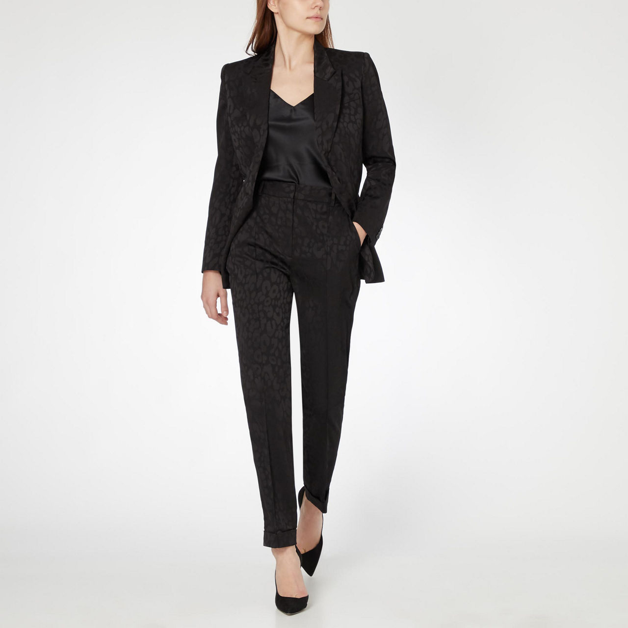 The Kooples imbue their Parisian street aesthetic into the design of these on-trend Leopard Print Trousers. Cut to a cropped length, the lightweight material is rolled up at the hem for a fresh take on the classic suit trousers, and they're decorated with an all-over tonal leopard print.