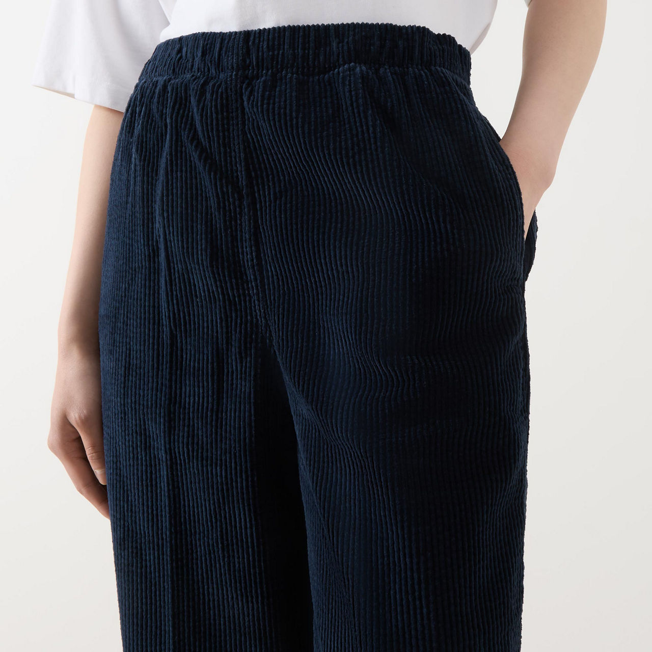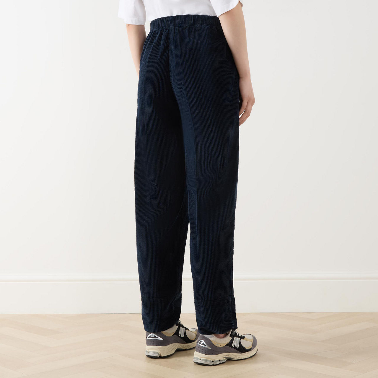 - Elasticated waistband, two side in-seam pockets, mid-rise, straight-cut leg, textured corduroy finish