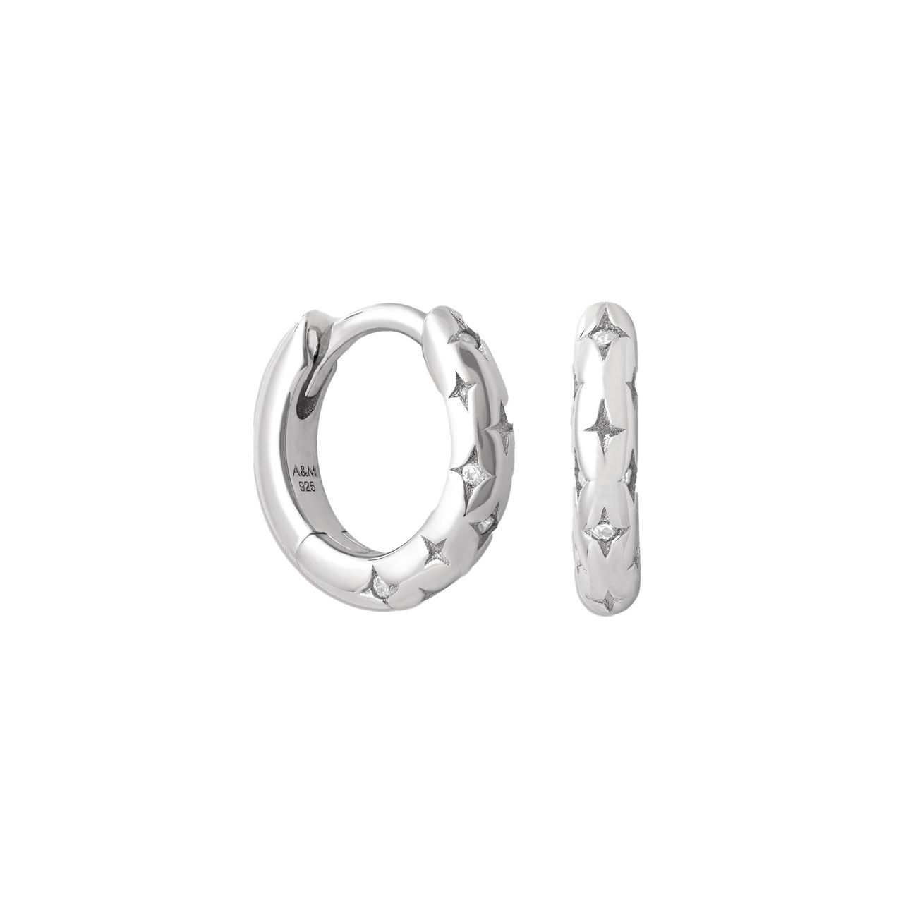 ASTRID & MIYU Cosmic Star Bold Rhodium-Plated Huggies