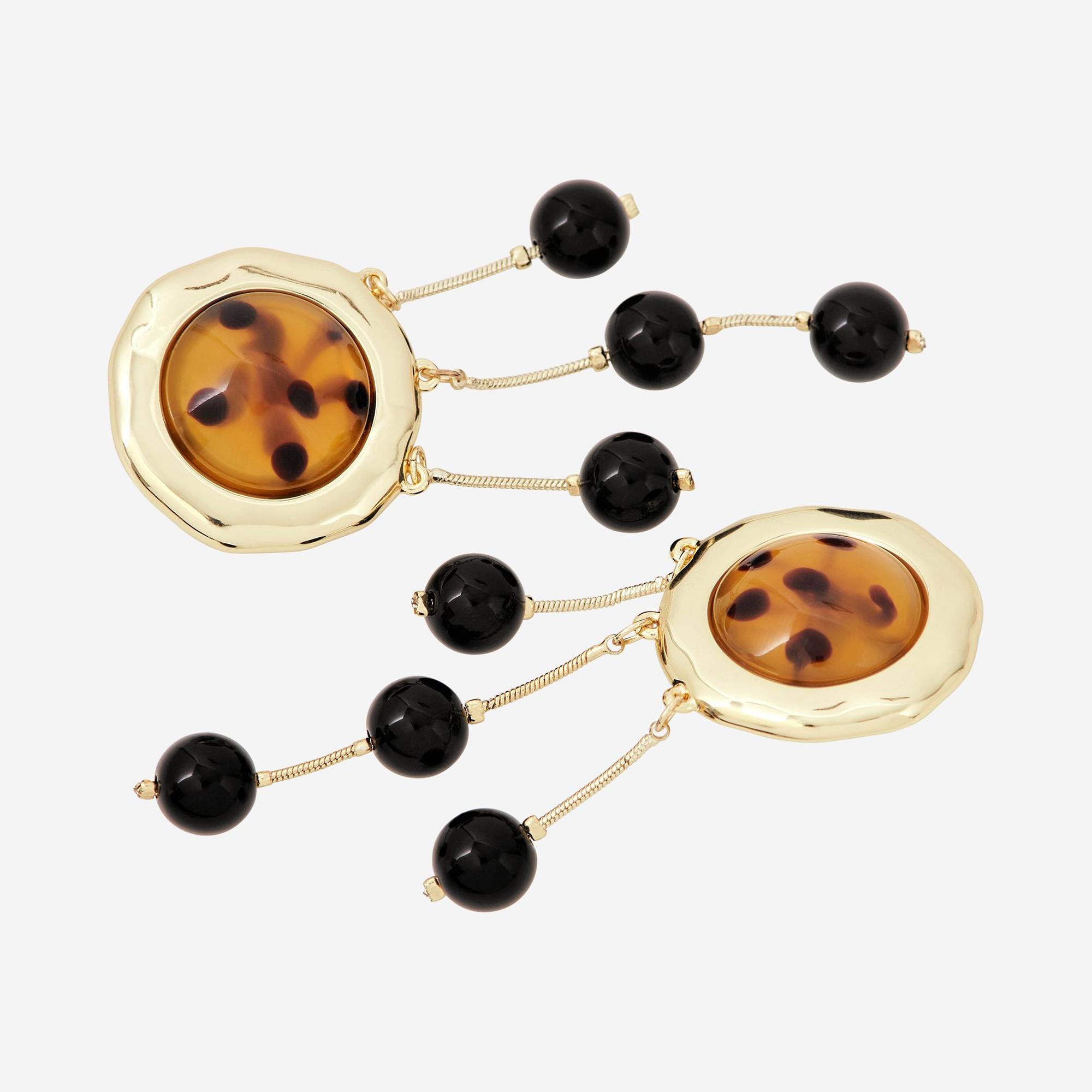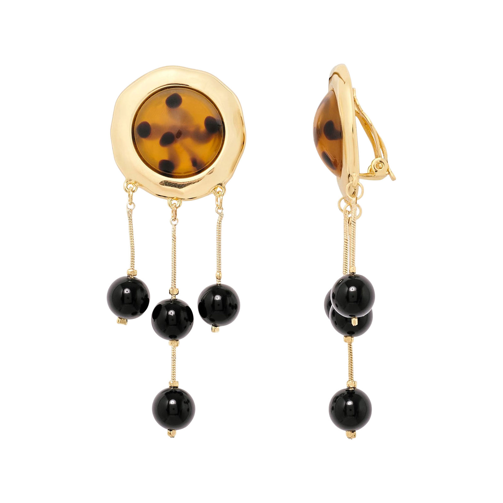 - Set of earrings, brass and rhinestone design, drop detailing, clip fasteners