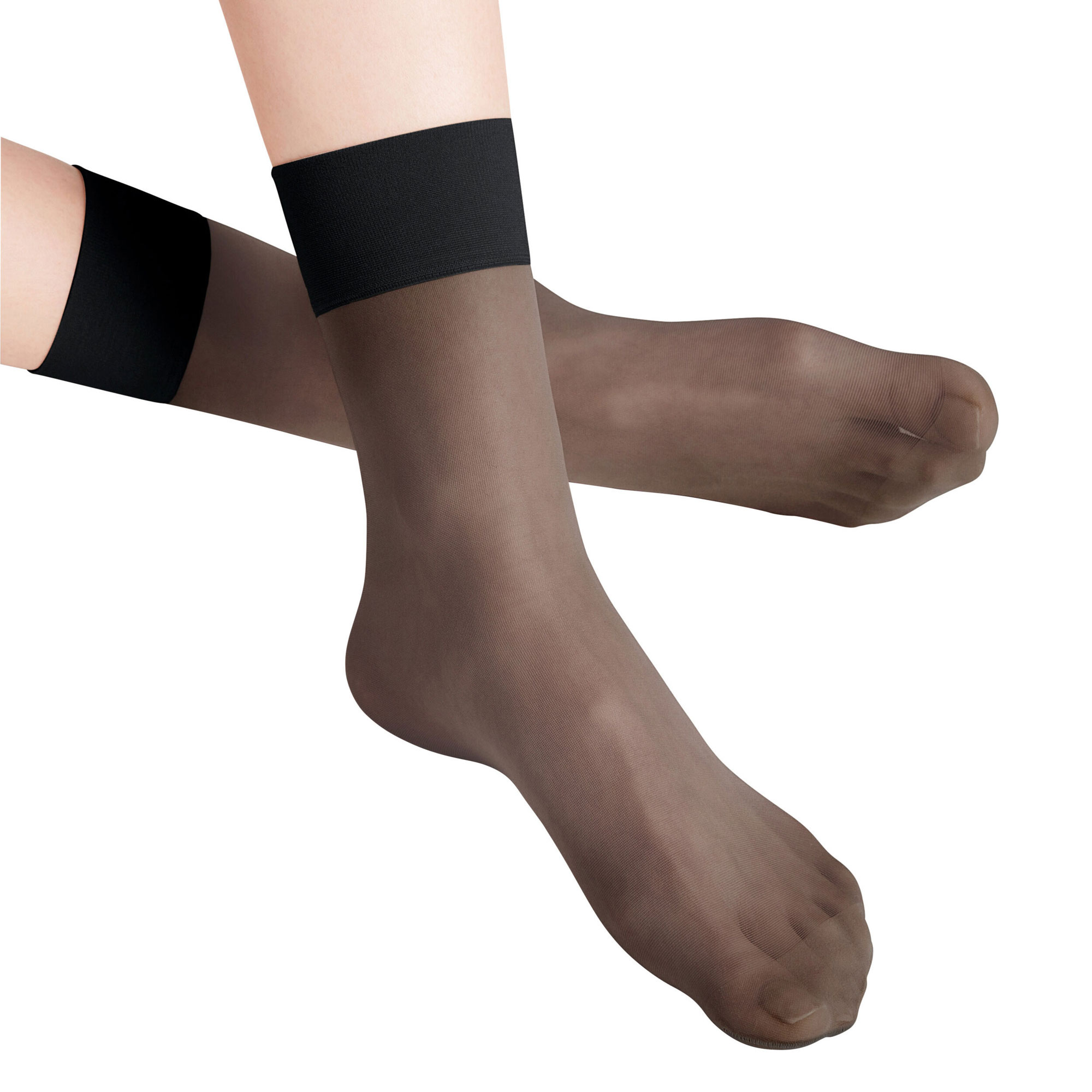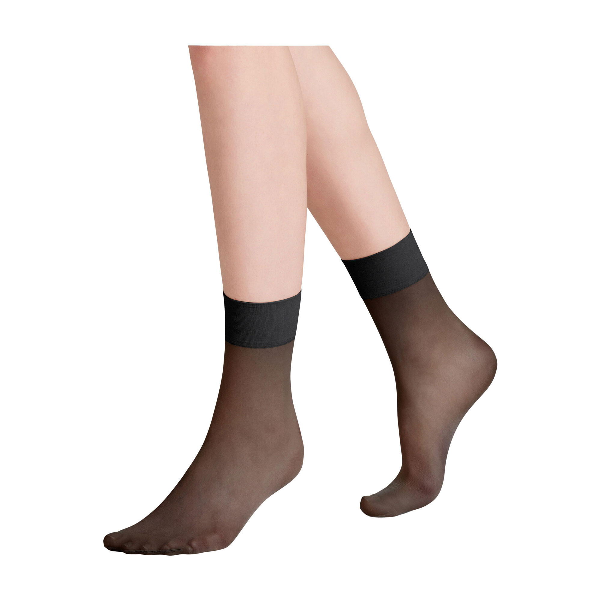- Sheer finish, matt look, fine feel, sensitive top band, durable toe, soft seam, knitting process, pressure-free fit, anklet style