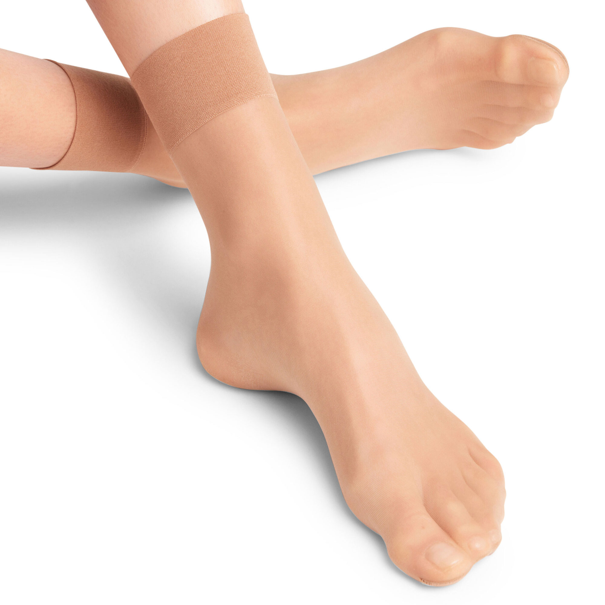 - Sheer finish, matt look, fine feel, sensitive top band, durable toe, soft seam, knitting process, pressure-free fit, anklet style