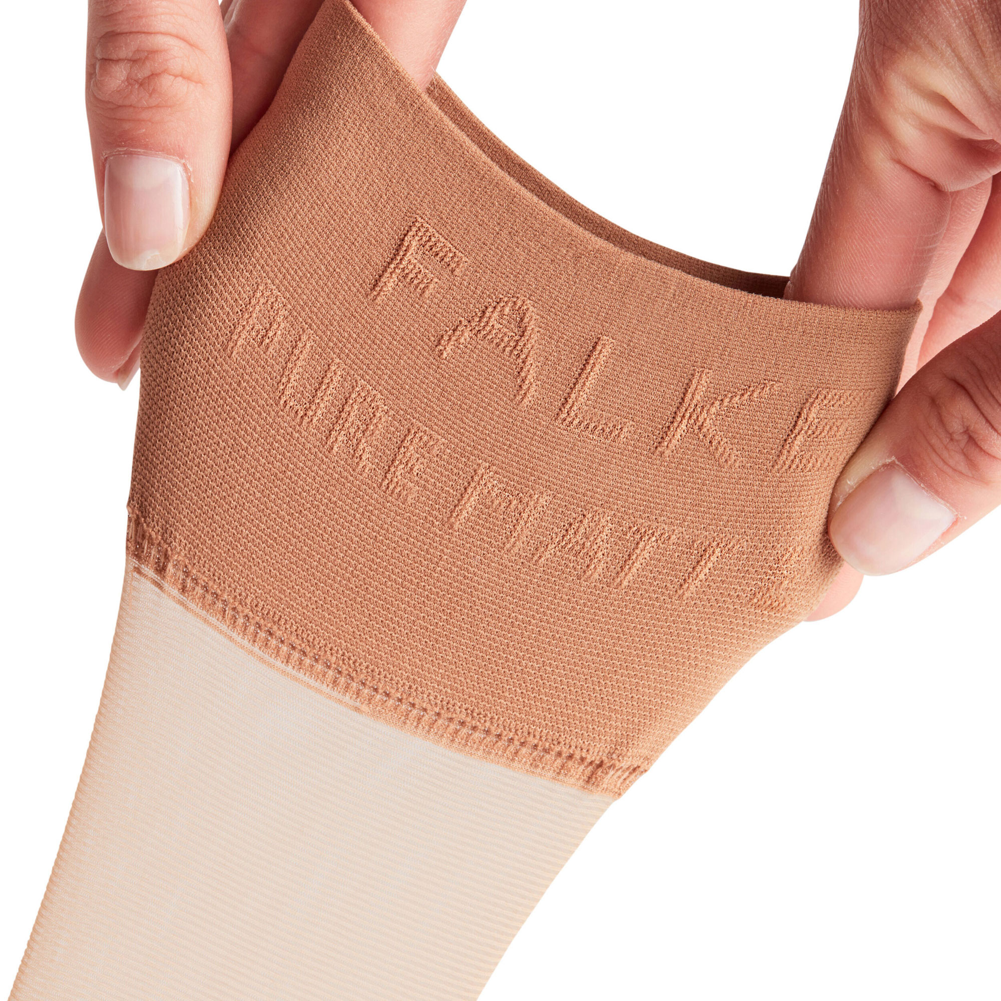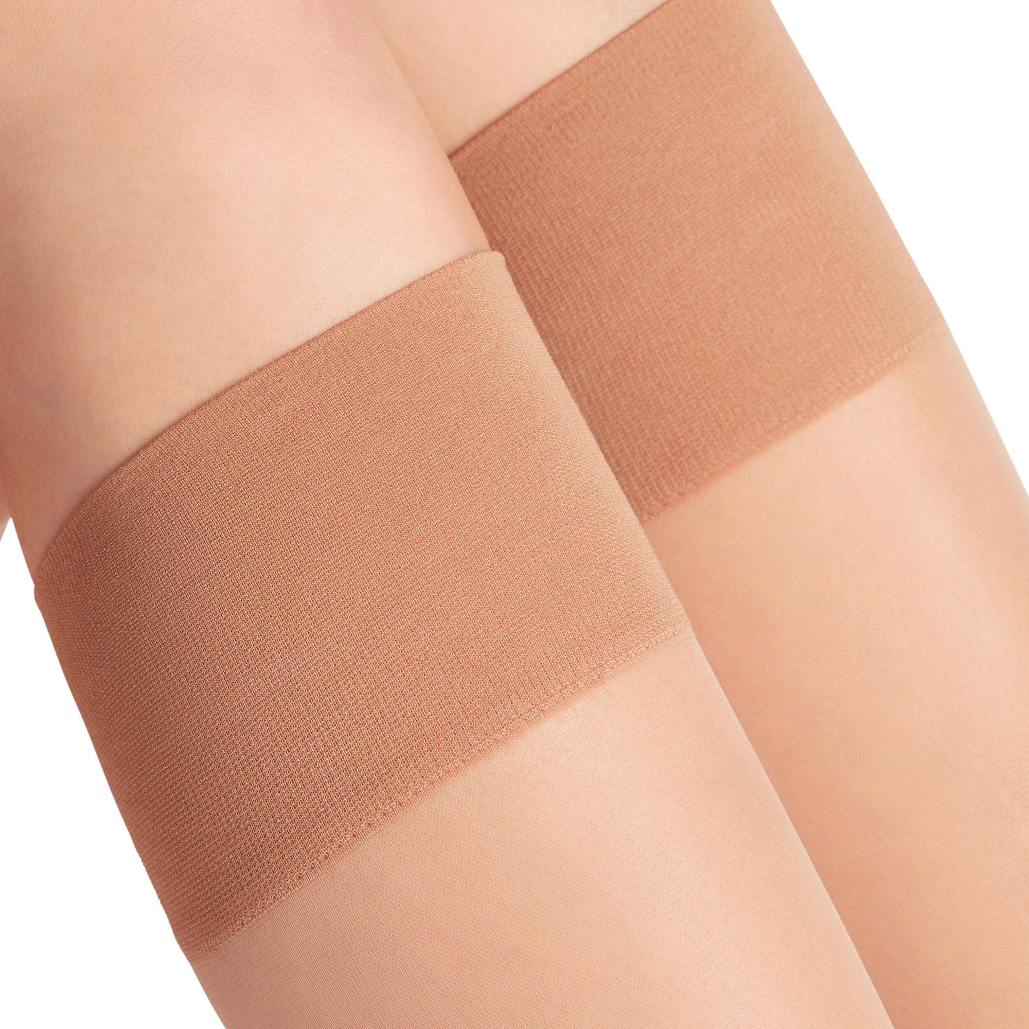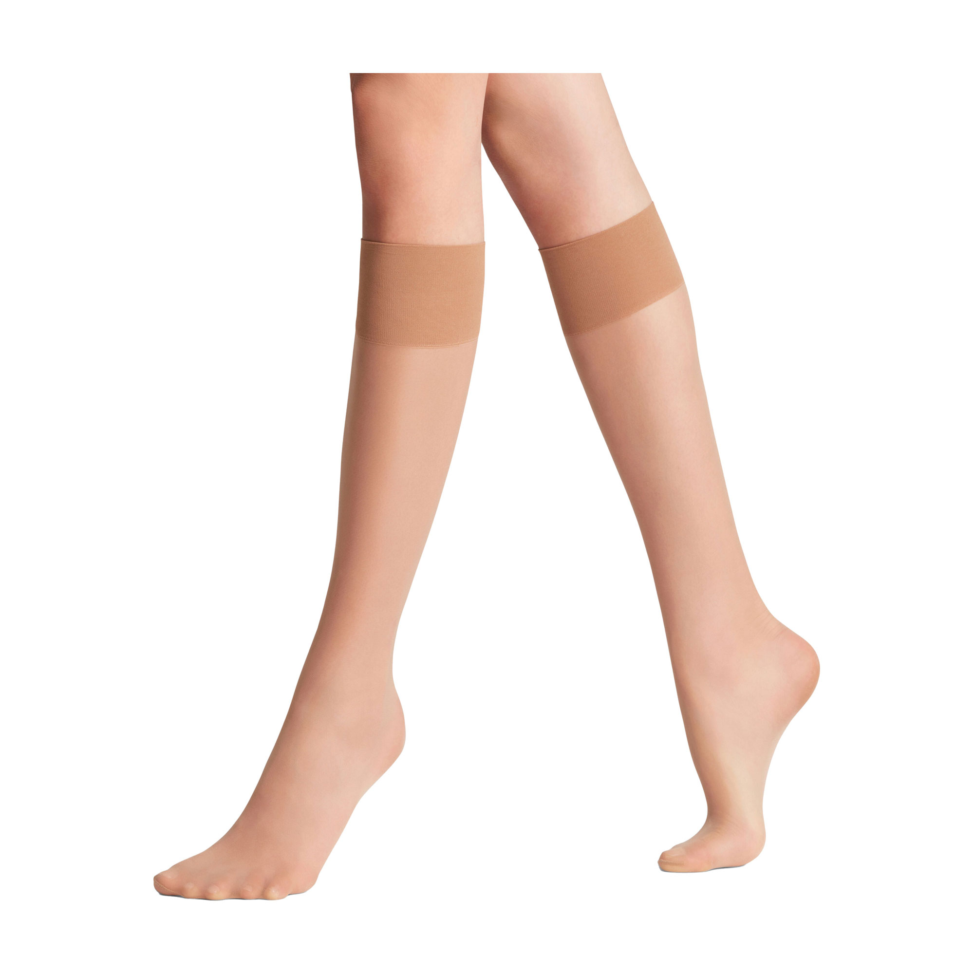 - Sheer finish, knee-high style, matt look, fine feel, sensitive top cuff, durable toe, soft seam, knitting process, pressure-free fit