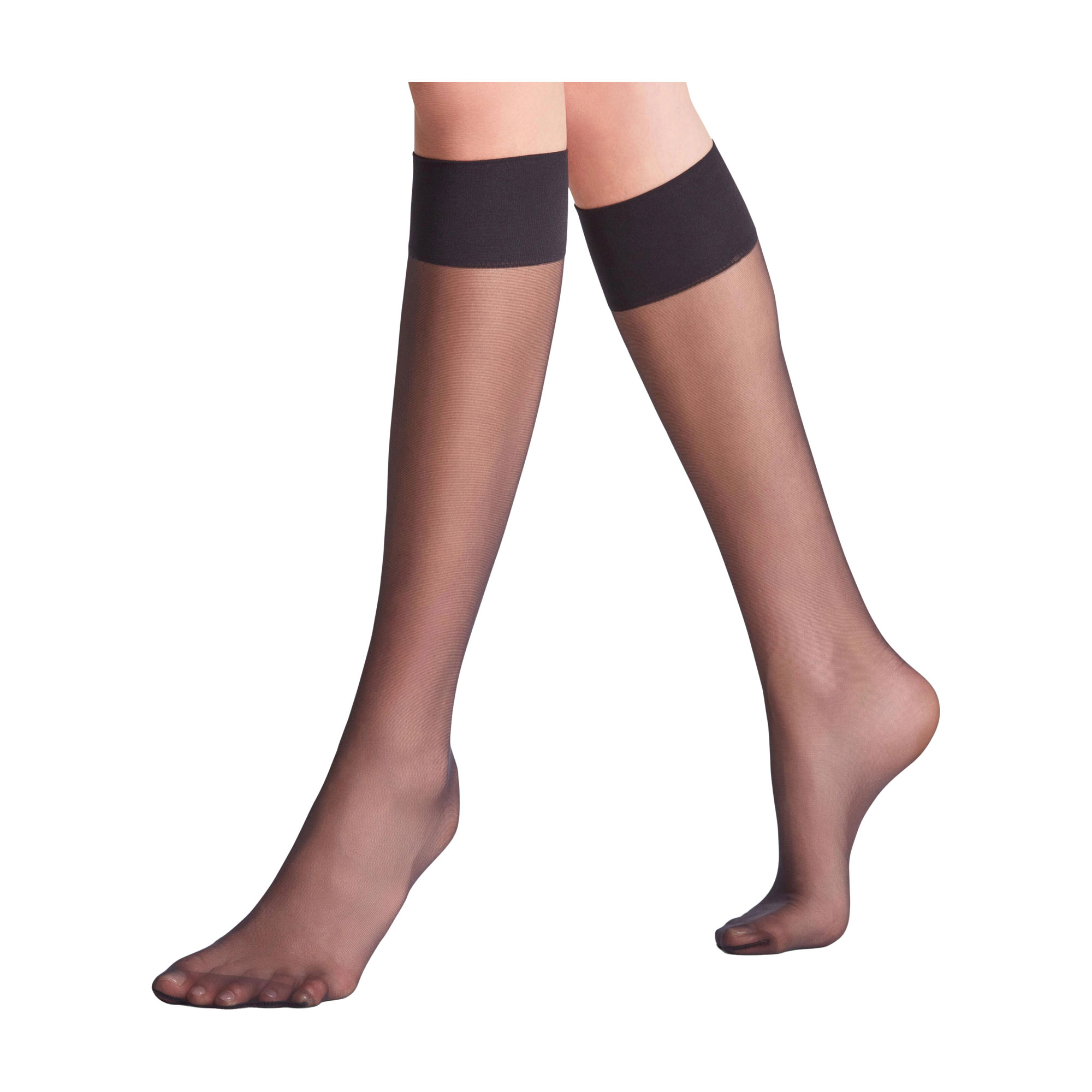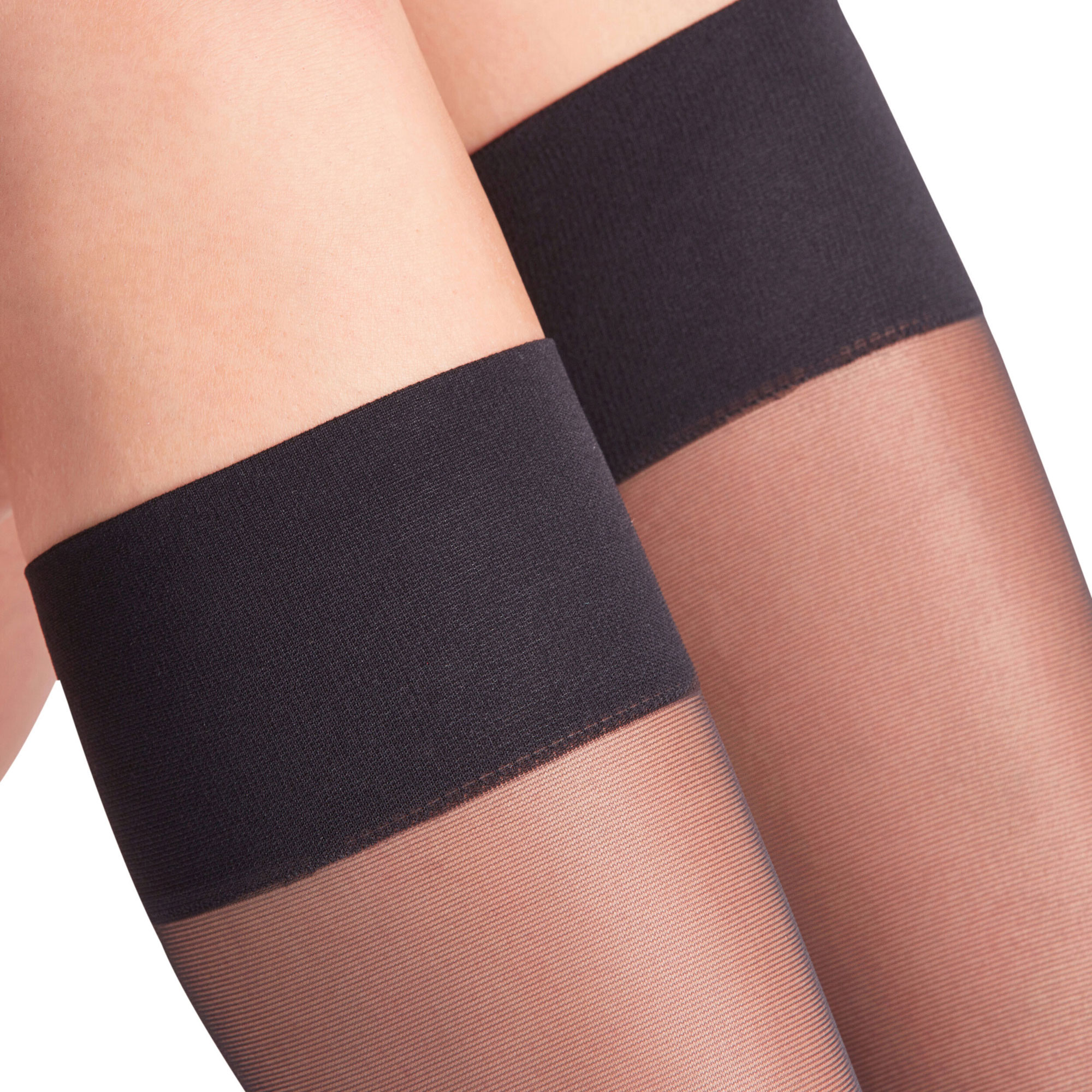 - Sheer finish, knee-high style, matt look, fine feel, sensitive top cuff, durable toe, soft seam, knitting process, pressure-free fit