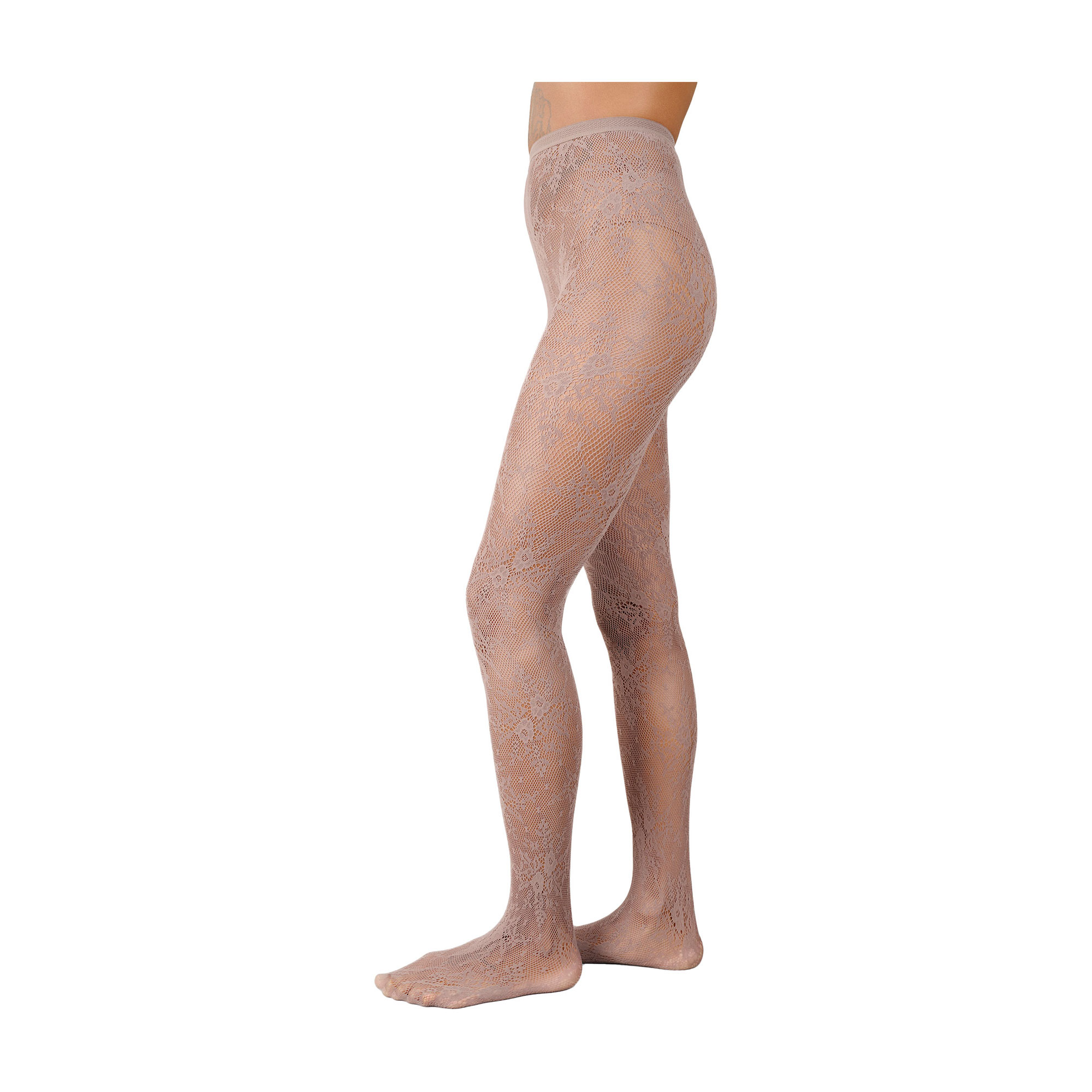 - Lace net style, sewn-on, soft waistband, toe reinforcement, cotton gusset