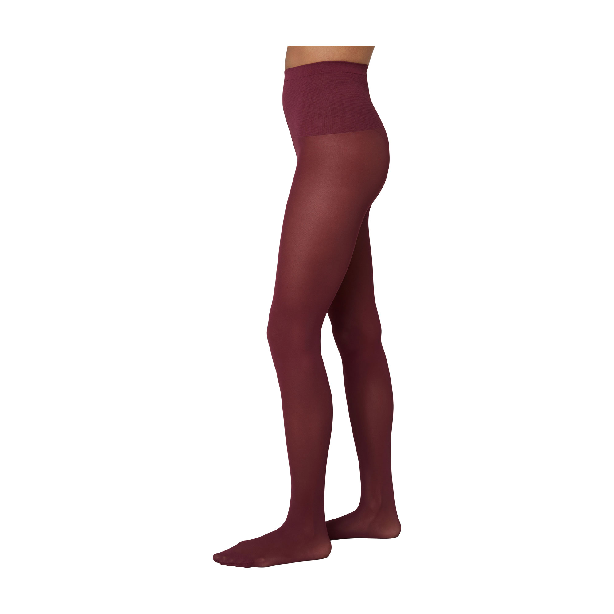 - 30 denier, smooth feel, semi-sheer finish, comfort waistband, flat seams, toe reinforcement, cotton gusset