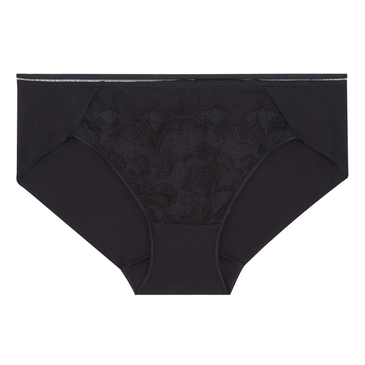 • Elasticated waist, sheer panel, lace embroidery.