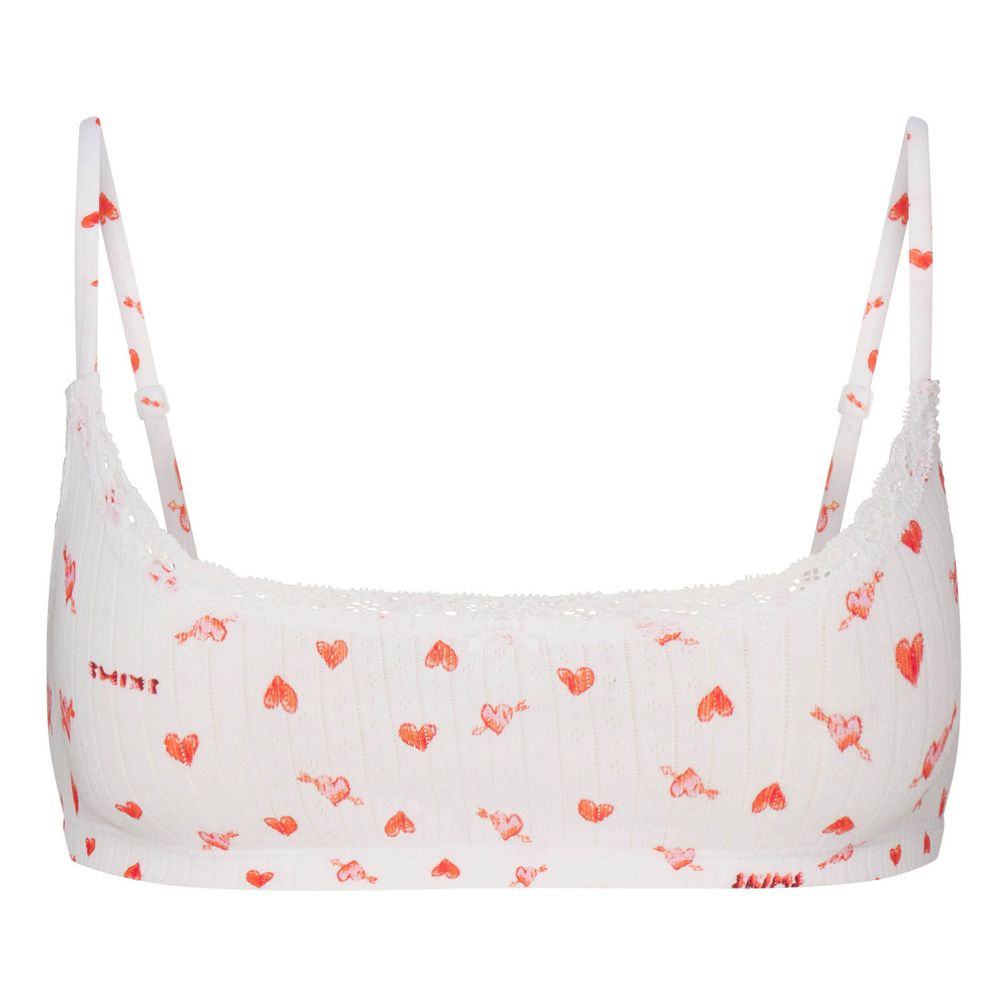 SKIMS VALENTINES COLLECTION Pointelle Scoop Bralette Snow Arrowed Hearts