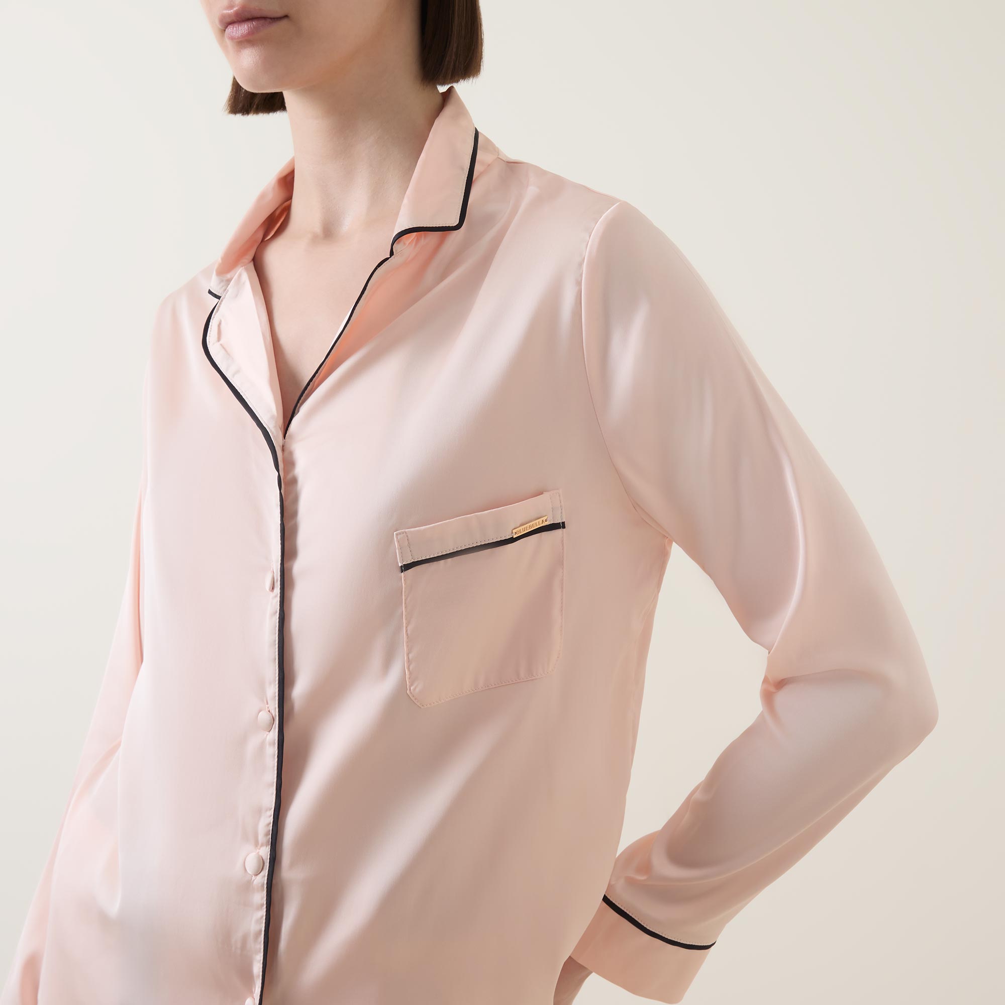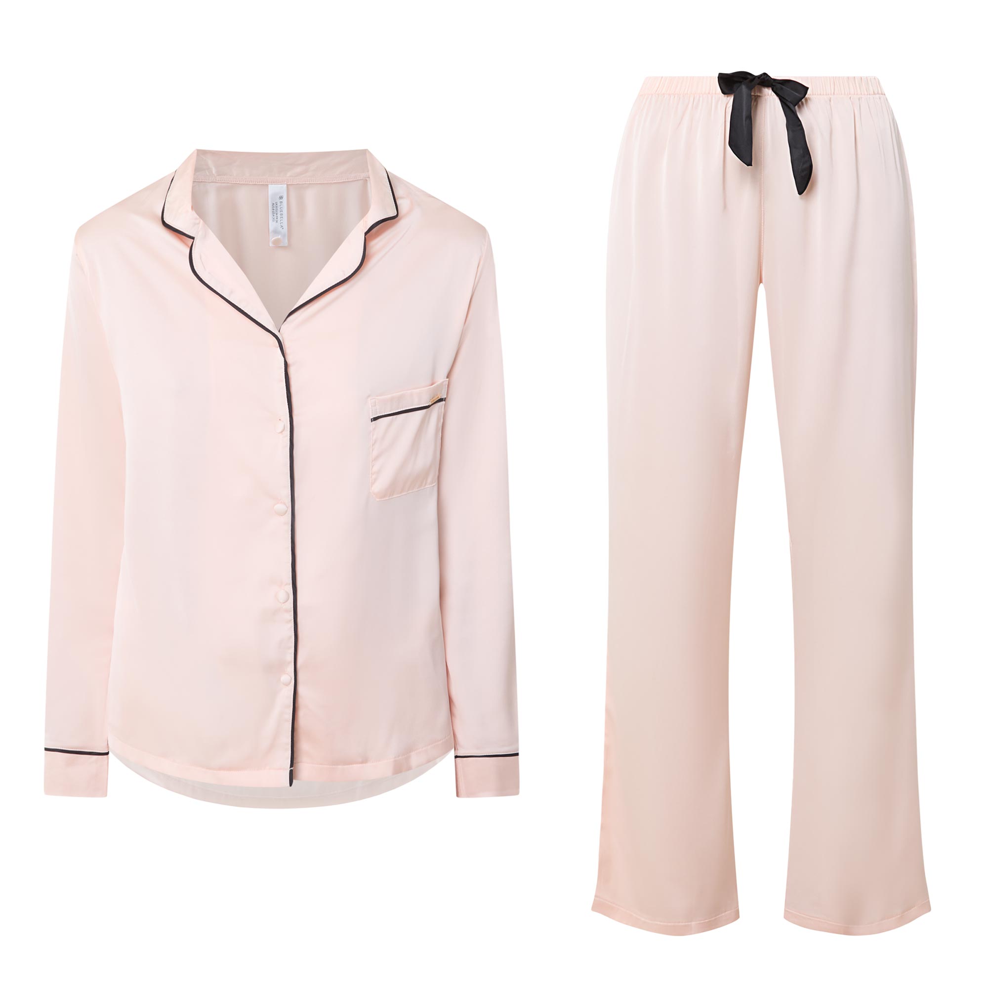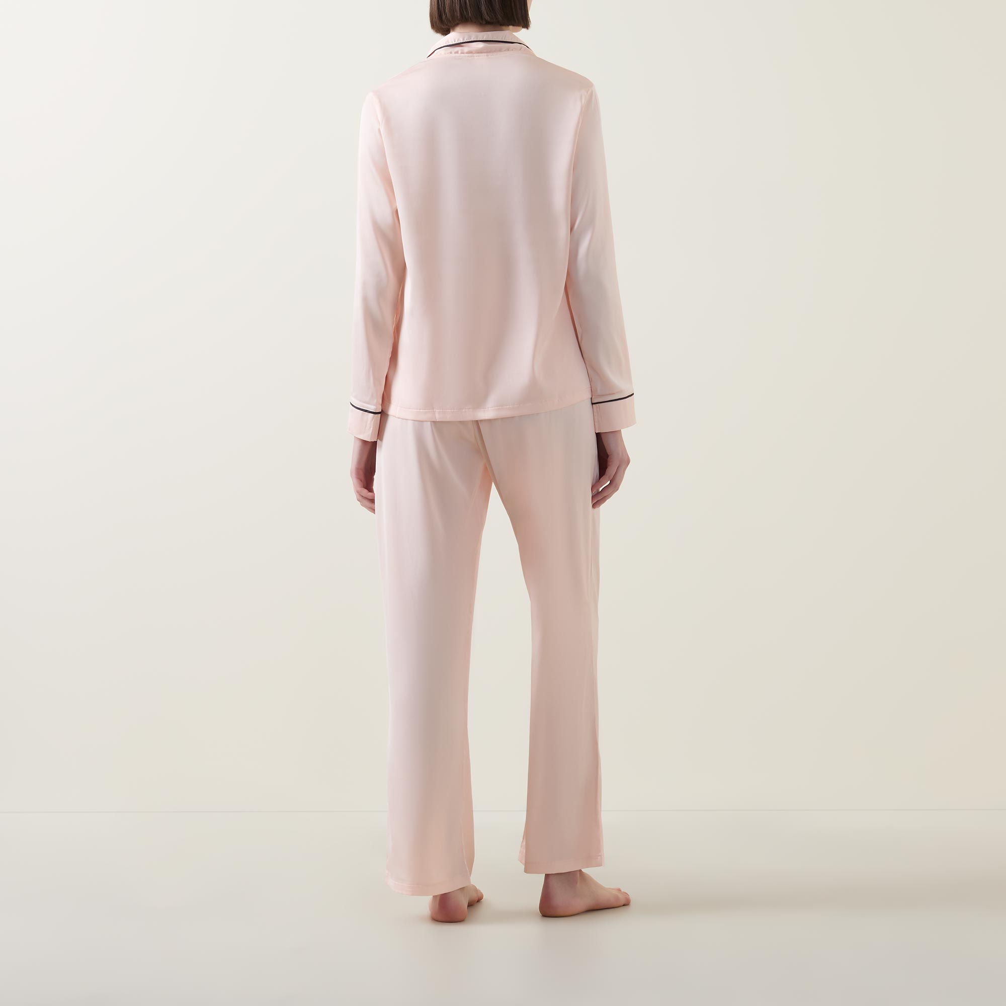 Channel your inner Coco Chanel in this classic pyjama trouser set from Bluebella, with a modern twist. This sweet pyjama trouser set is timeless in style, with a nod to the elegant pyjamas worn by Coco Chanel. The soft satin shirt is trimmed with contrast satin piping along the collar, pocket and cuffs, while the trouser is finished with a large satin bow for a modern take on a classic pyjama look.
