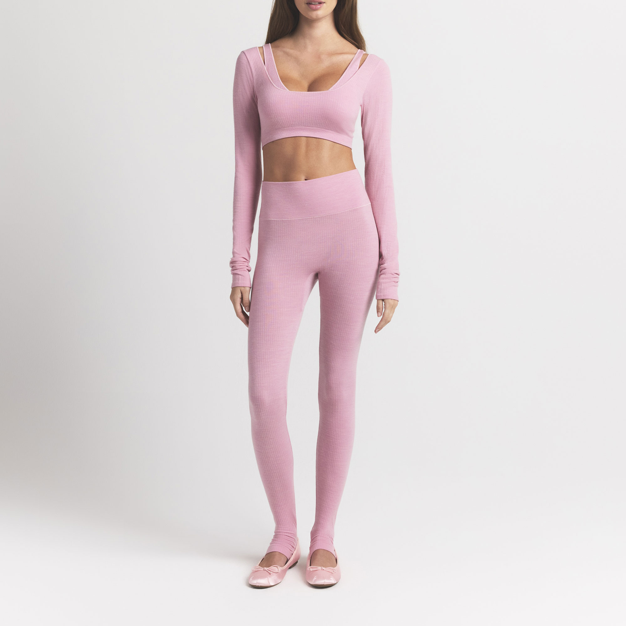 Soft, sophisticated, and the perfect finish to your winter look. This high-waisted legging is made from SKIMS' new ribbed wool-blend for all-day comfort. Features a double layered waistband and flattering style lines at the back.