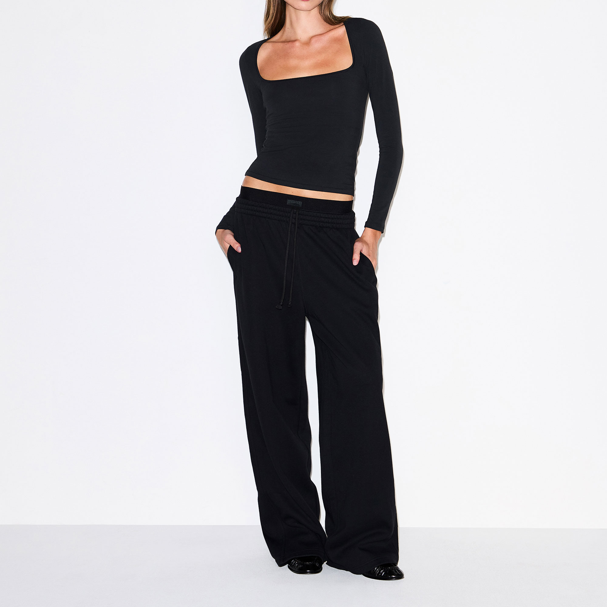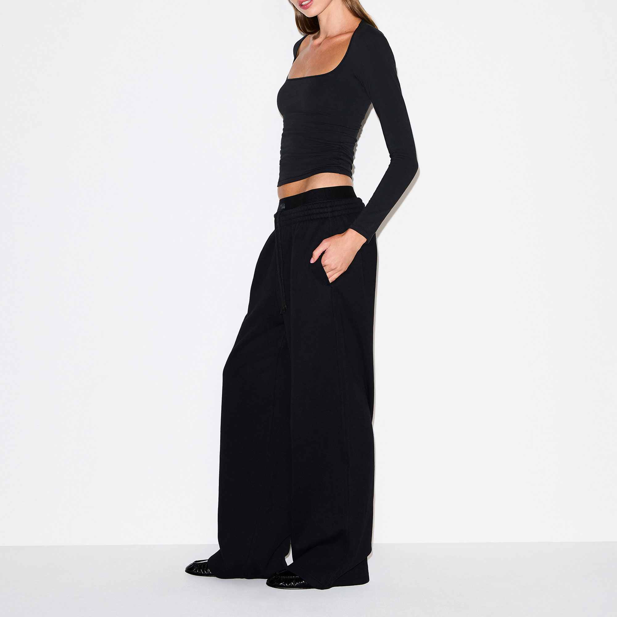 SKIMS Oversized Double-Waistband Pants Onyx