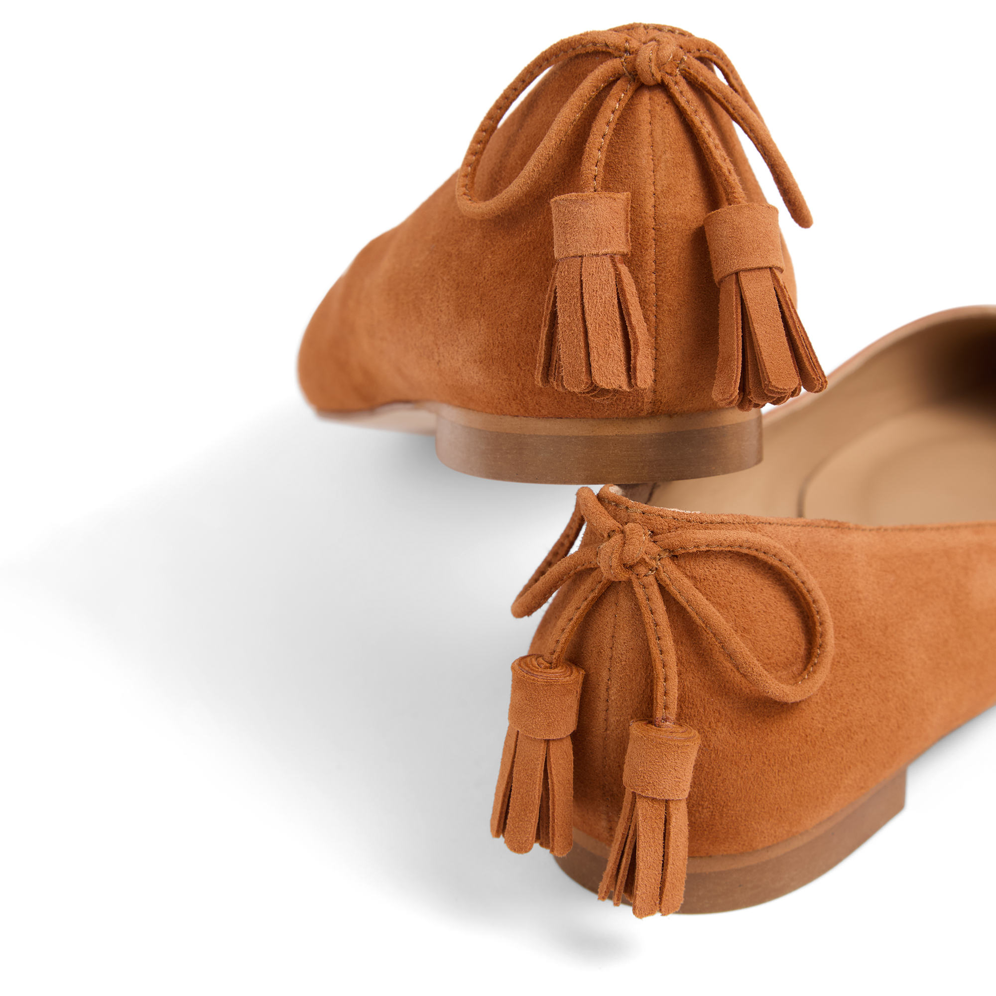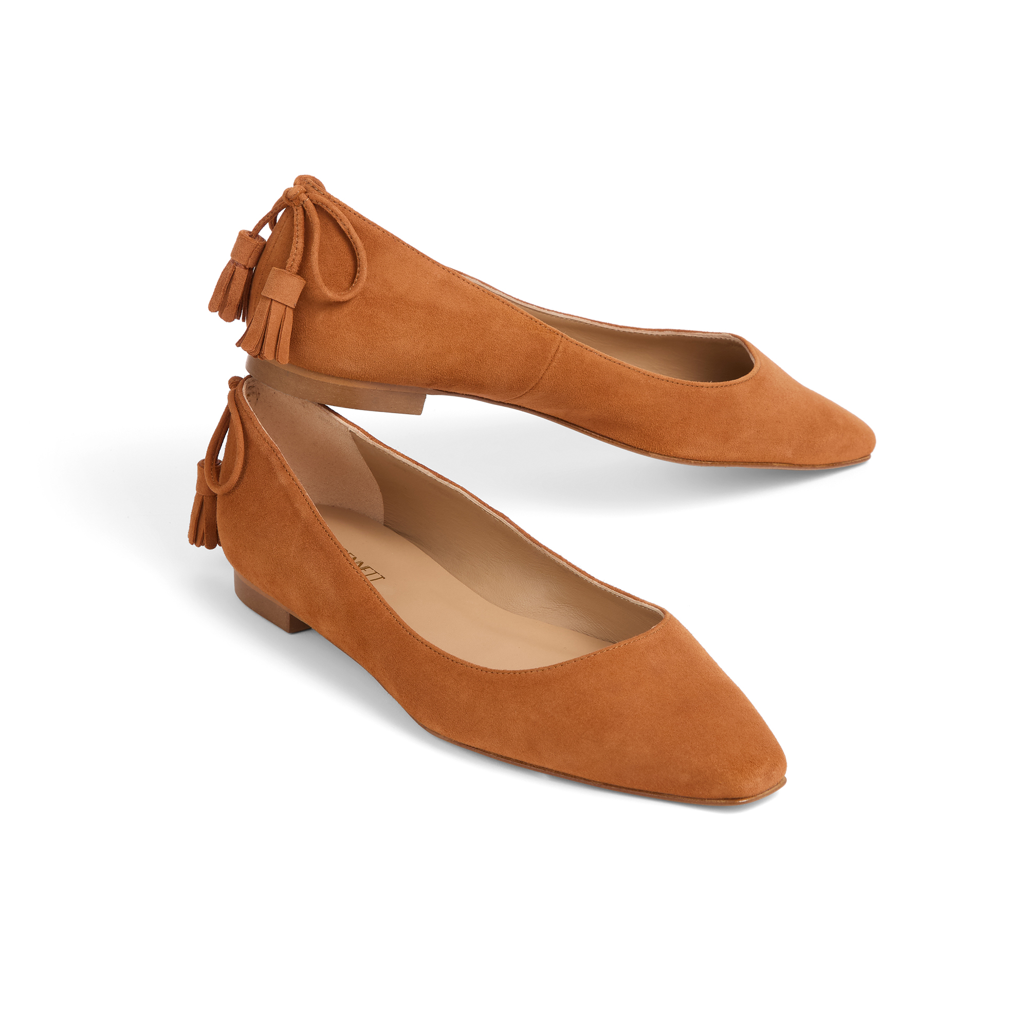 - Pointed toe, flat sole, suede finish, tassel detail