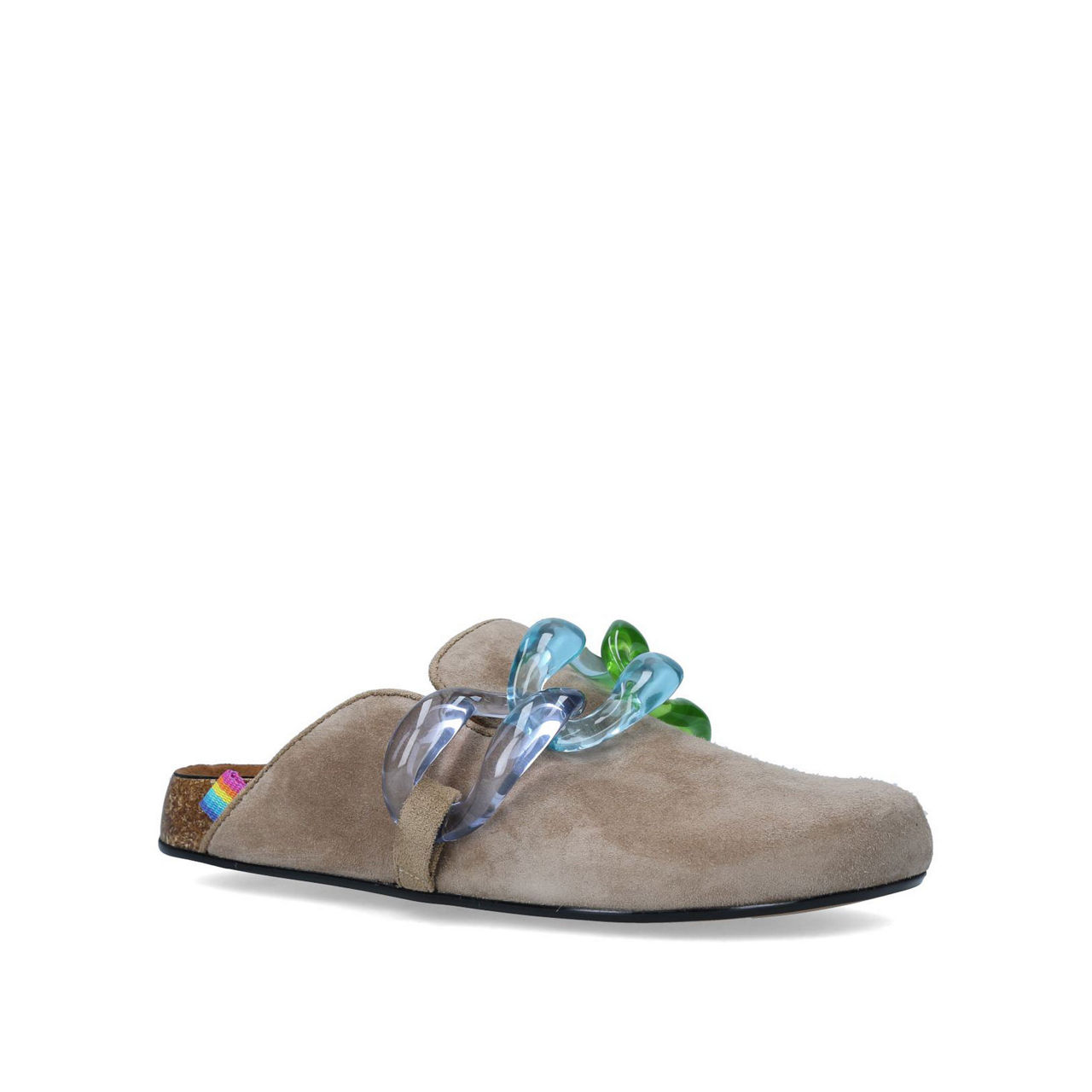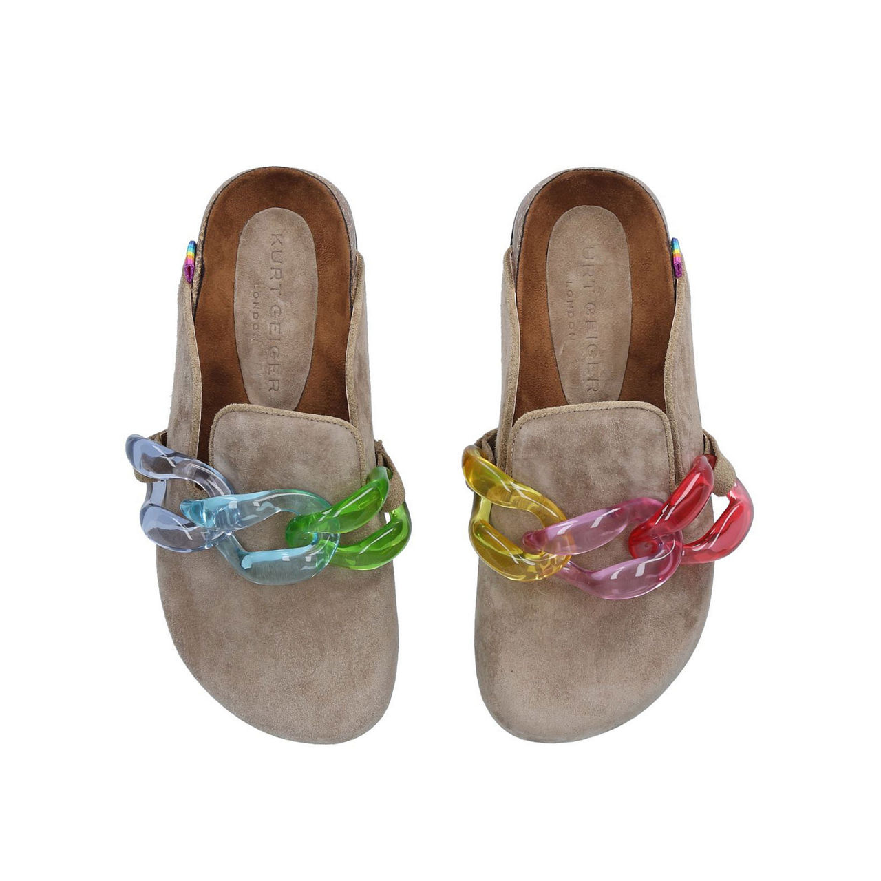 Clogs are making a comeback and Kurt Geiger's Ozarks are perfect for elevating casual spring outfits. Stylish and comfortable, they feature a suede upper with an oversized rainbow chain detail.