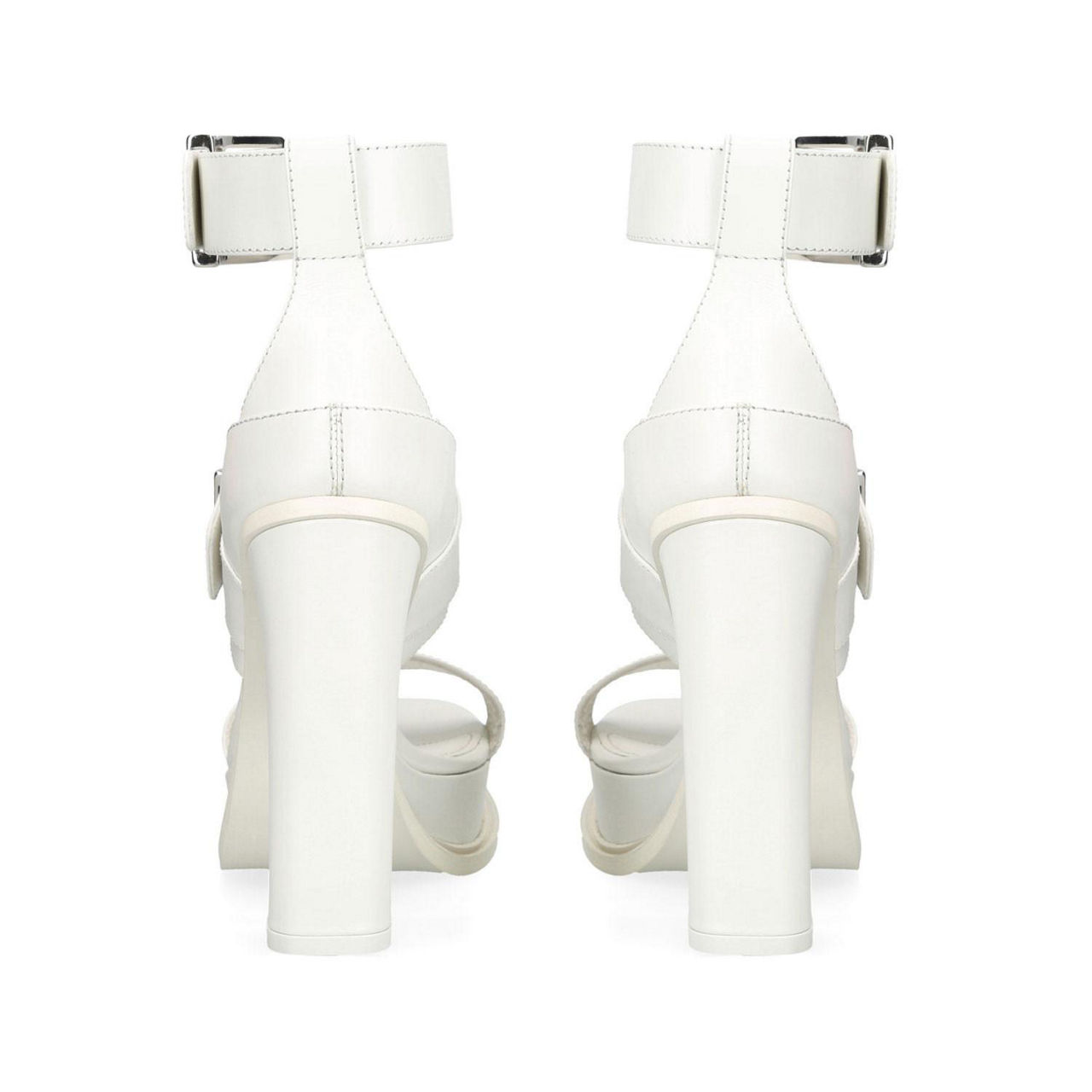 - Platform sole, block heel, two buckled straps, cut-out effect, silver-tone hardware