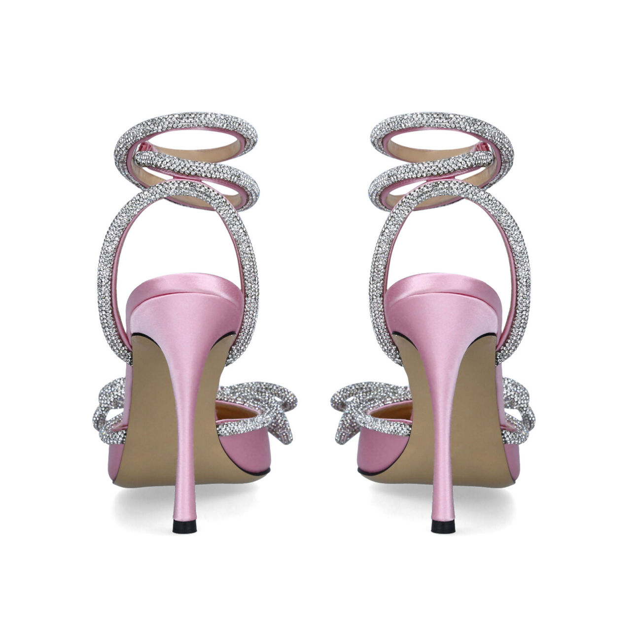 - Pointed toe, crystal embellished, double bow, ankle strap, pointed toe, stiletto heel