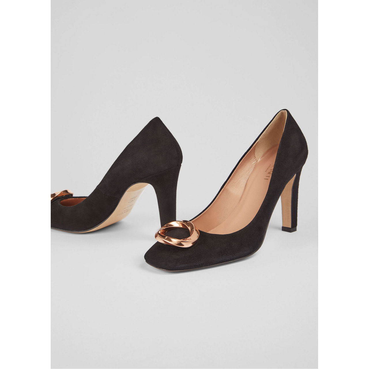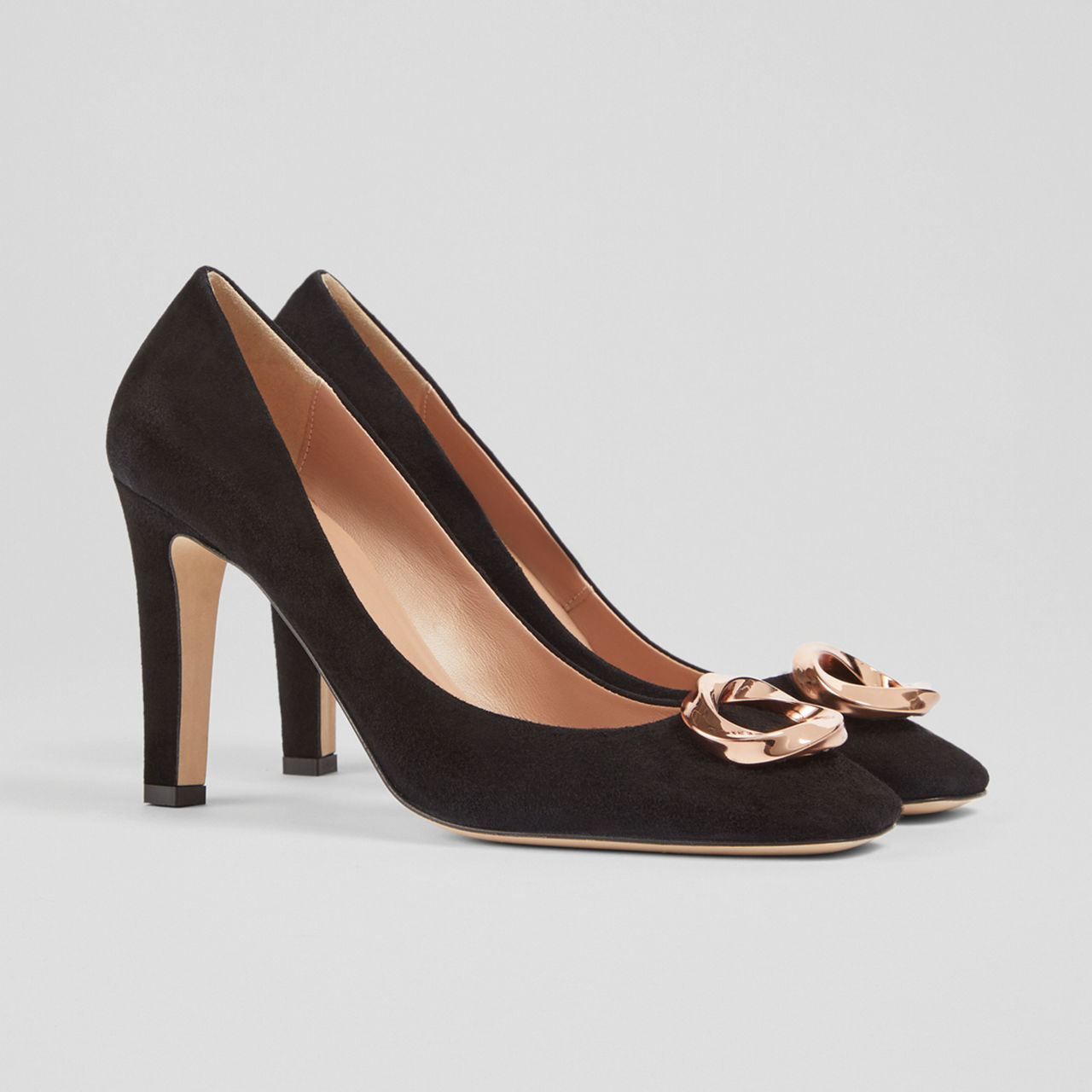 Stand tall in the Evelyn suede courts from LK Bennett this season. With their soft square toe and gold tone detail, this polished pair of courts are the perfect addition to your wardrobe this season. Great for all-day comfort.