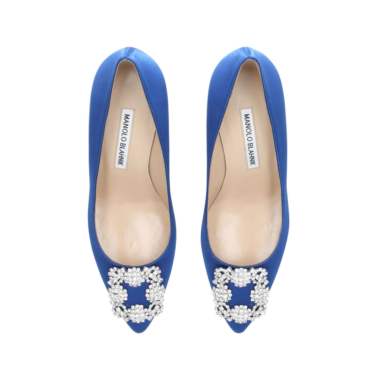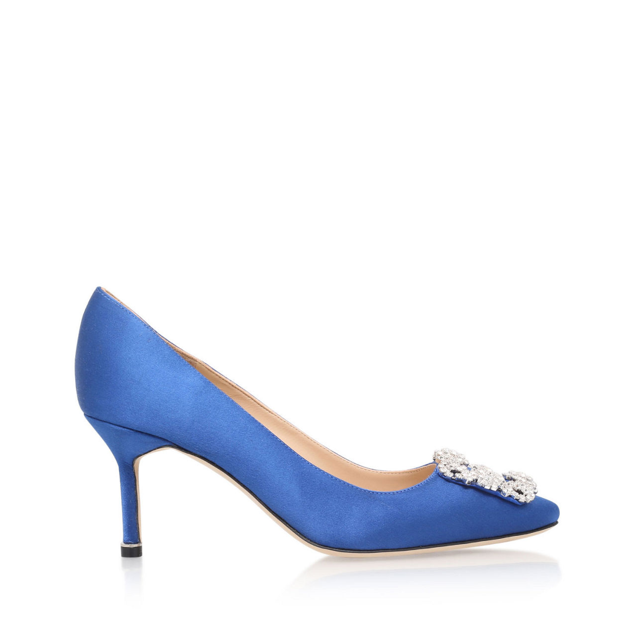 Manolo Blahnik impress with a standout embellished buckle detail on this beautiful satin pair, creating an old-world aesthetic that is both ornate and timeless. A stunning occasion shoe, team with an understated dress to allow the stiletto-finished silhouette to take centre stage.
