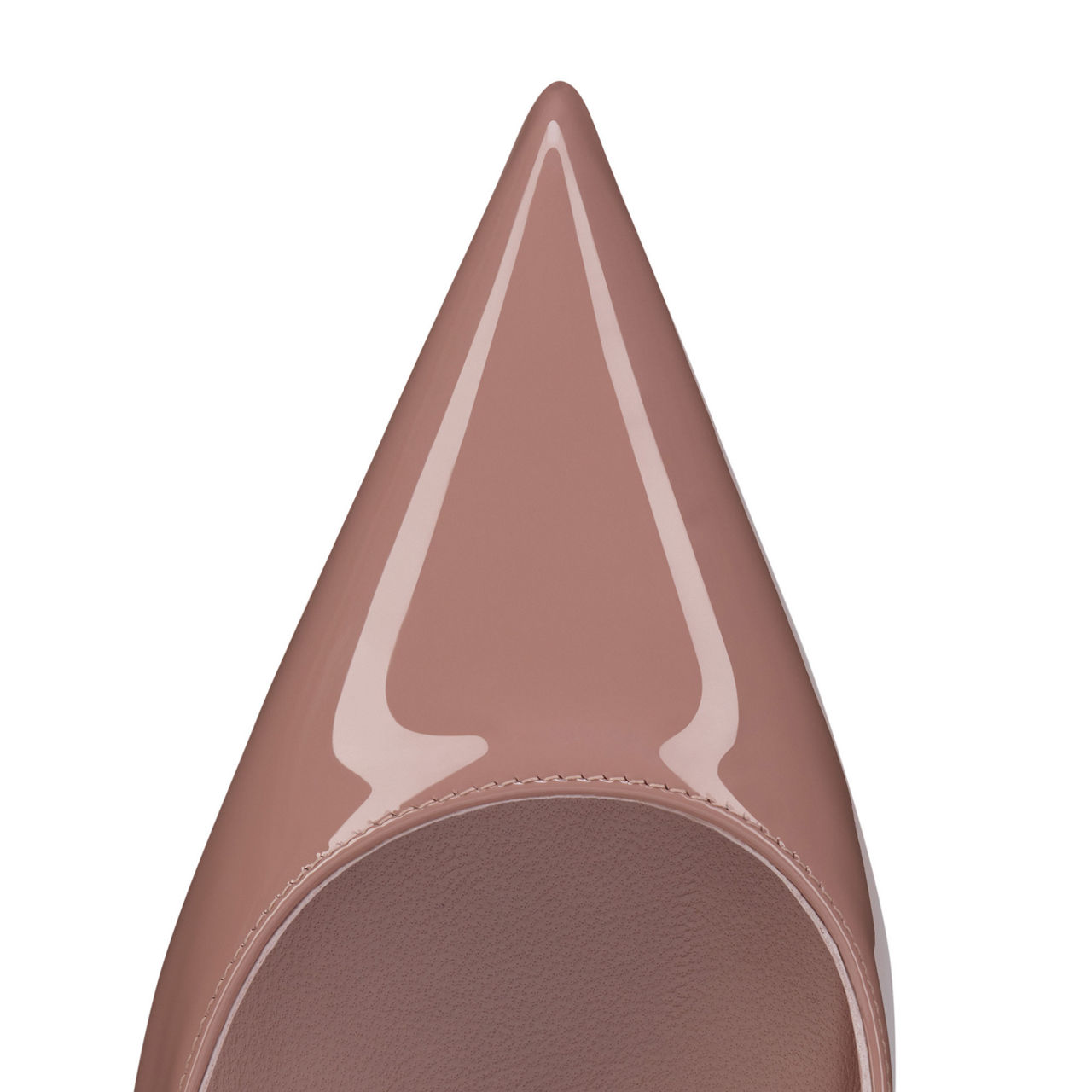 - Pointed toe, low vamp, stiletto heel, patent finish, all over padded insole, softer construction, updated expanded volume to give more room at the front of the shoe, iconic red sole