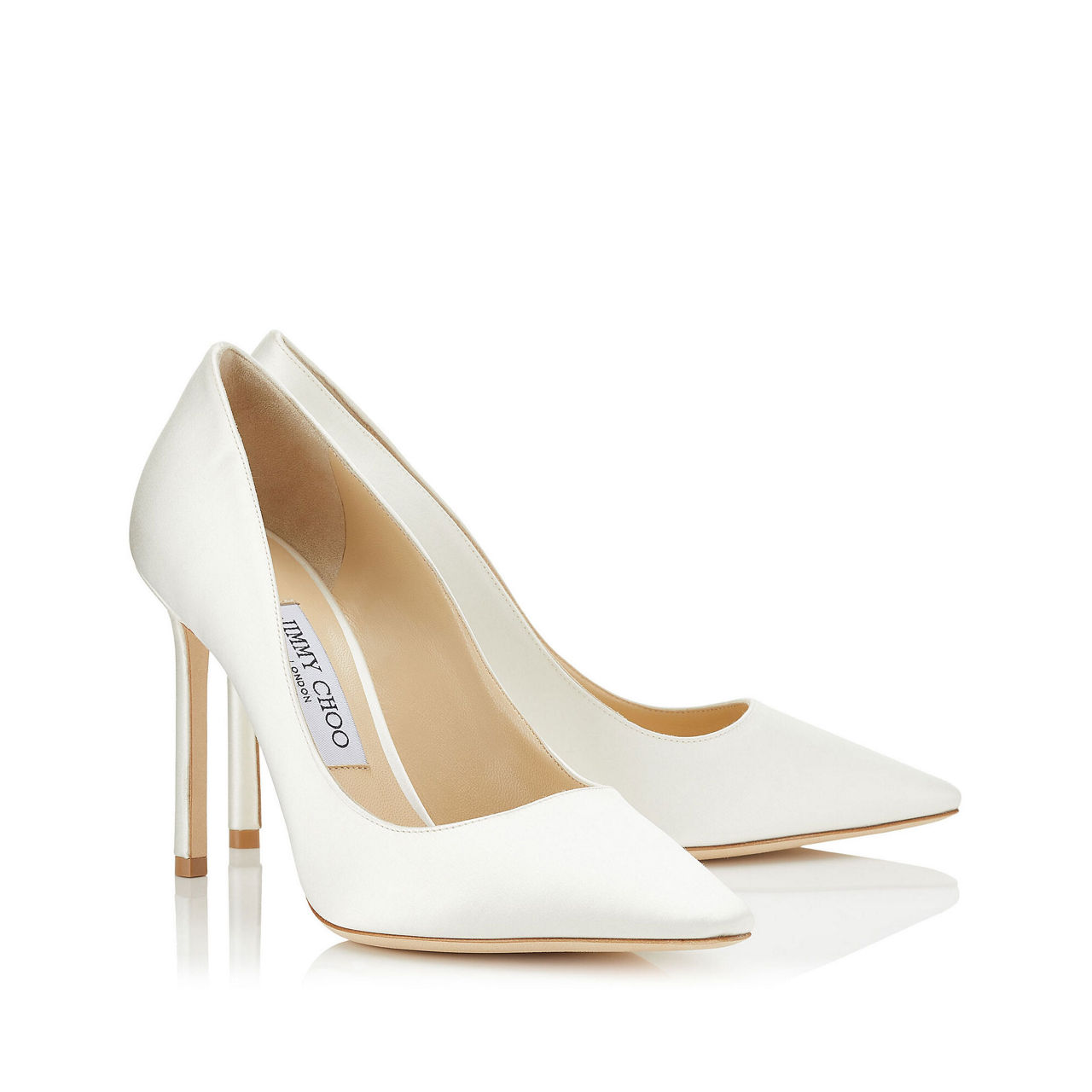 Beautiful soft-sheen satin dresses the upper of the Romy style from Jimmy Choo, creating a modern-classic moment with elegant intentions and versatility. Set on a serious stiletto, the silhouette impresses with every step - even down the aisle, working beautifully as a minimalist bridal shoe.