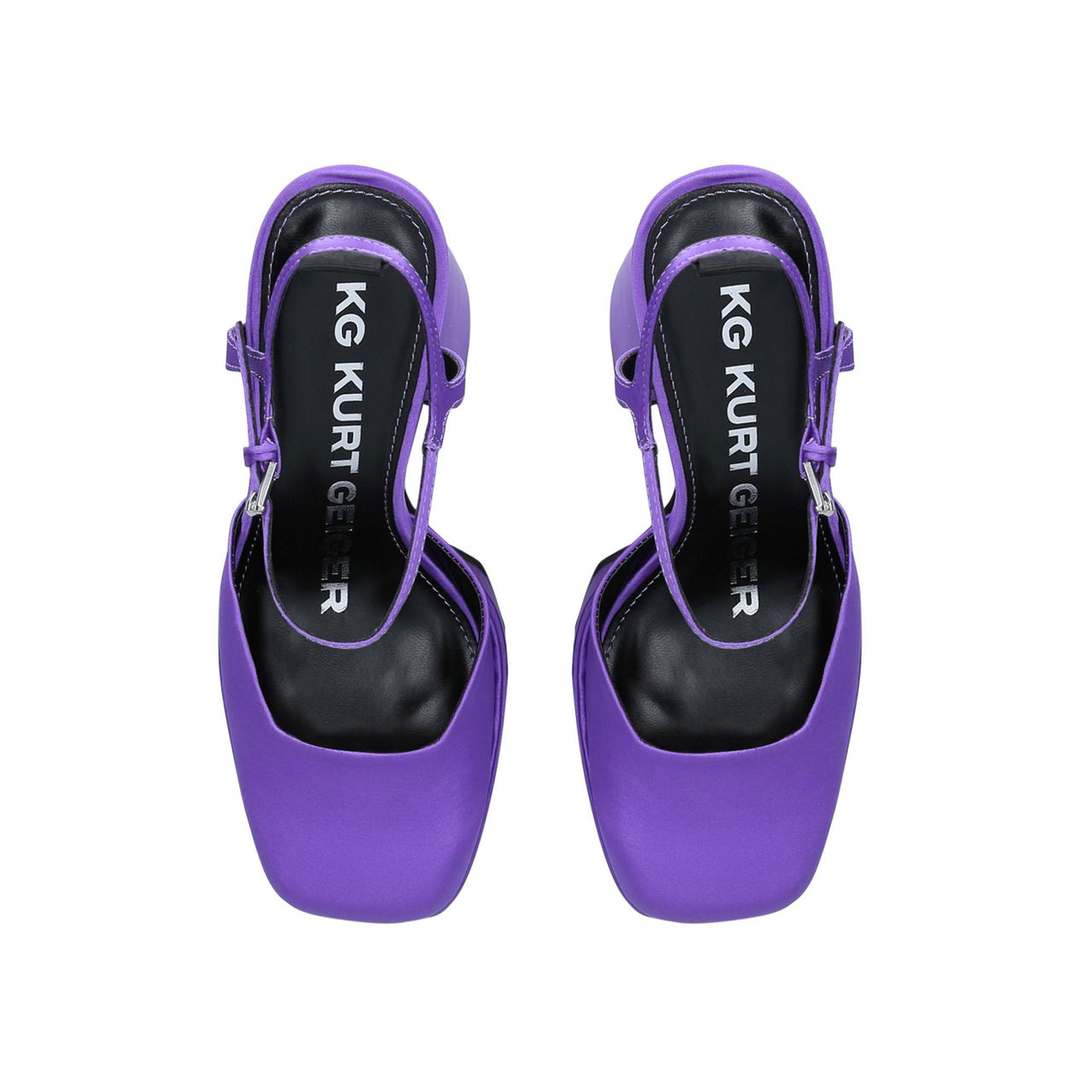 KG By Kurt Geiger craft a towering platform pair in the Serena style, offering an uber-contemporary silhouette that will elevate your party looks. Fastening at the ankle, the satin construction is shaped to a trending square toe.