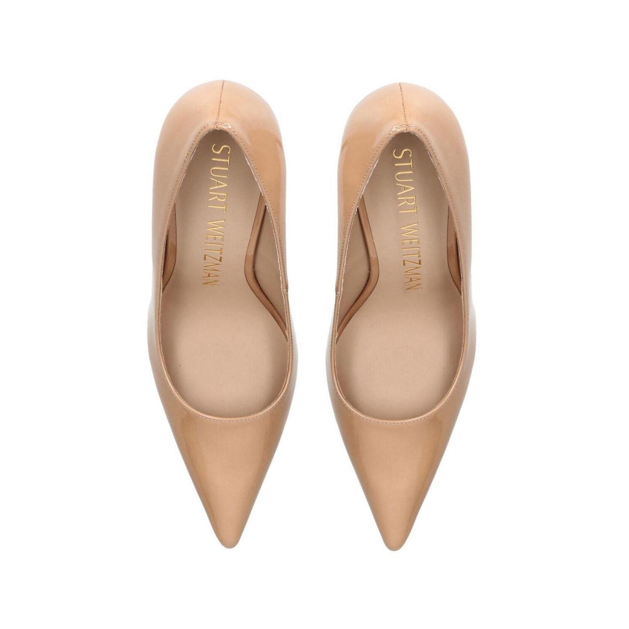 A gleaming and glossy patent design gives these shoes from Stuart Weitzman instant glamour appeal. In a classic nude hue, they will pair effortlessly with everything from sharp tailoring to that Little Black Dress.