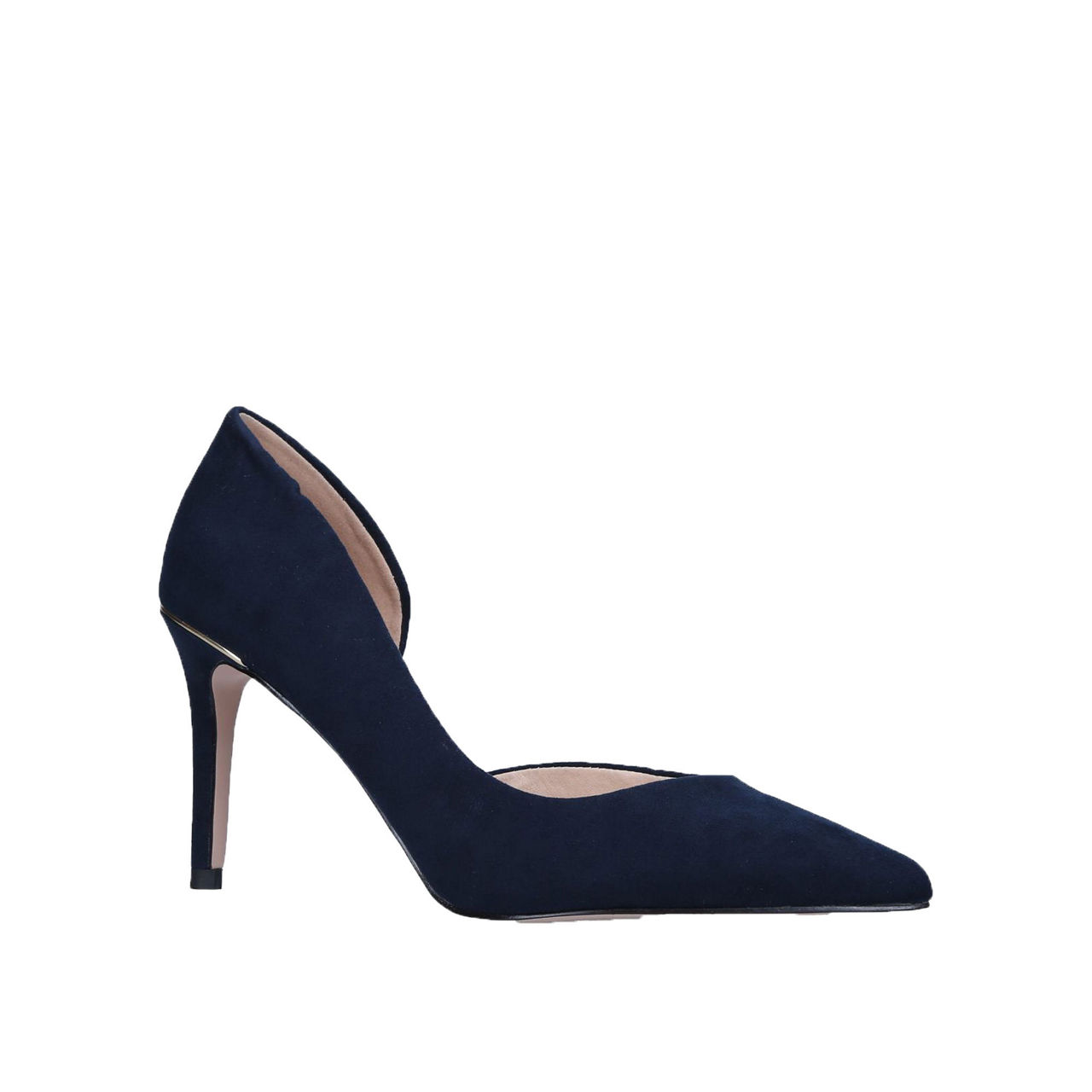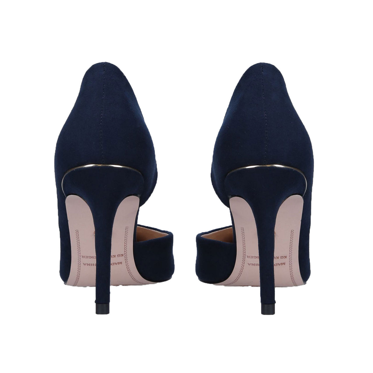 Feminine and elegant, the Alyssa Courts from KG by Kurt Geiger work a pointed toe and a cut out detail to the inside. In a rich navy suedette finish, they boast a luxe gold tone detail to the heel- perfect for elevating floral midi dresses or sharp tailoring.