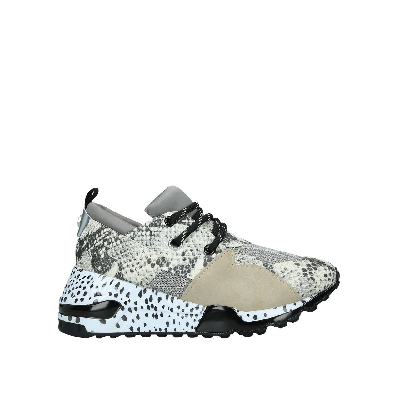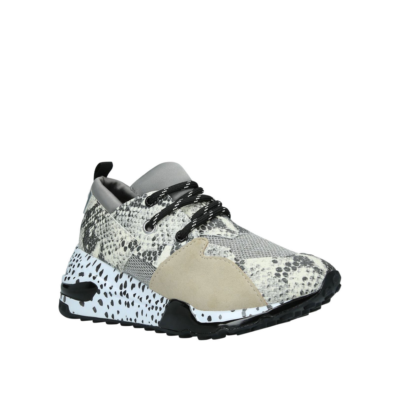 - Sloped sole, animal print, lace-up fastening.