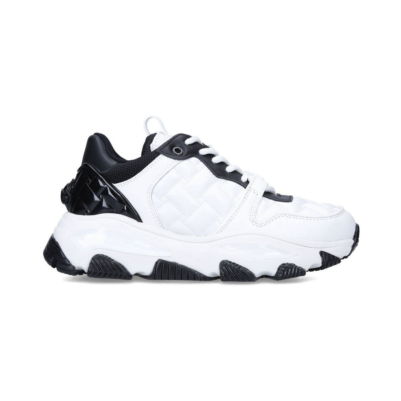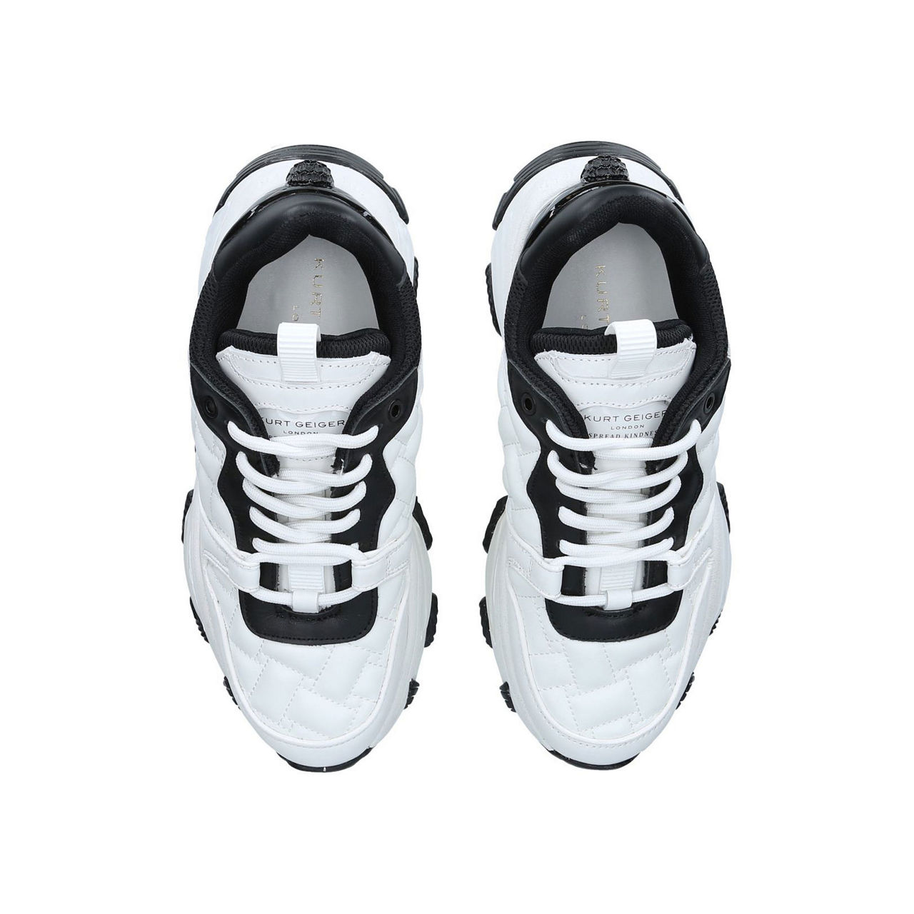 Revamped this season with standout texture, the Lettie trainers from KG By Kurt Geiger work a contemporary pumped-up sole and monochrome features. The brand's eagle emblem sits at the back while the tongue features the brand's 'Spread Kindness' slogan.