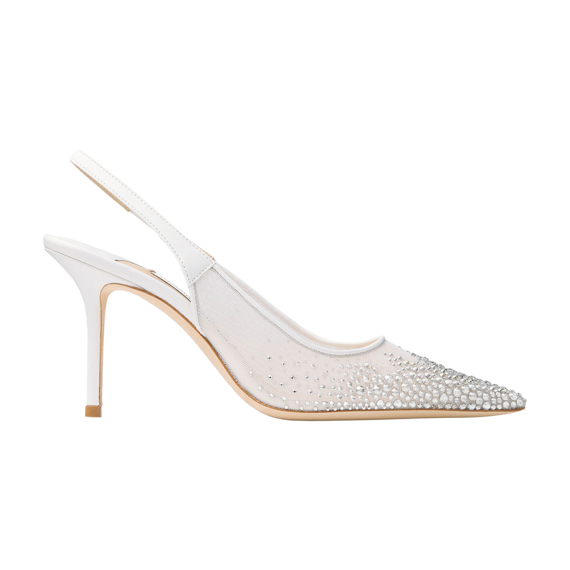 - Mesh, degrade galaxy crystals, slingback, hand-sculpted leather sole, pointed toe