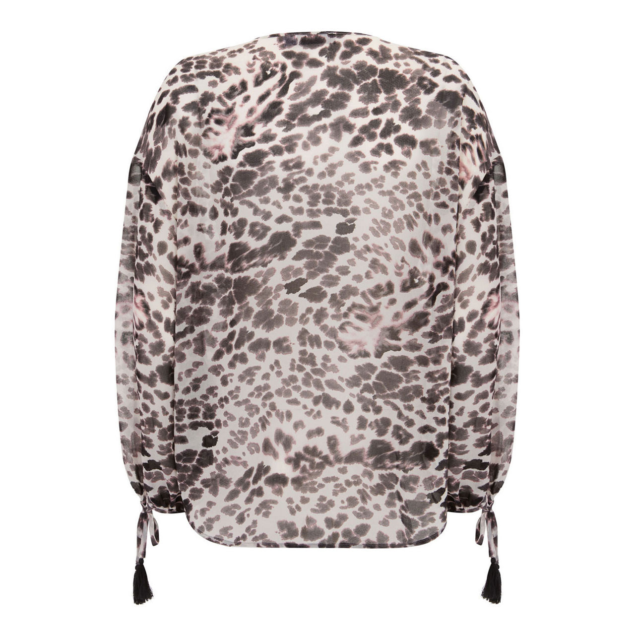 Cut from 100% recycled polyester that's printed all over with washed-out animal motifs, this off-white blouse has a bohemian feel that you'll love. It's designed in a loose-fitting silhouette with pintucks along the open V neckline and voluminous sleeves finished with tasselled cuff ties. Pair yours with biker jeans to add some edge.