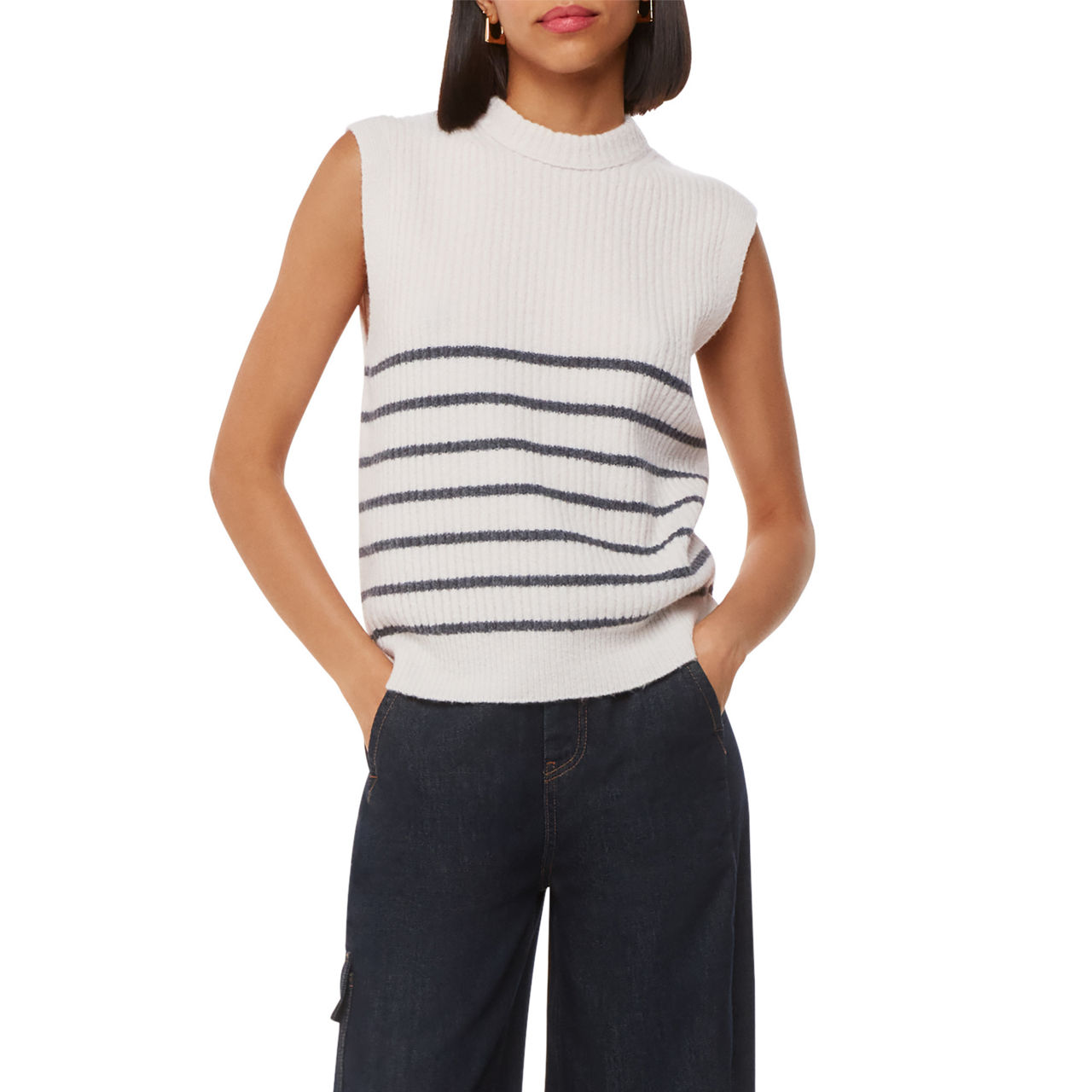 WHISTLES Rib Knit Striped Vest