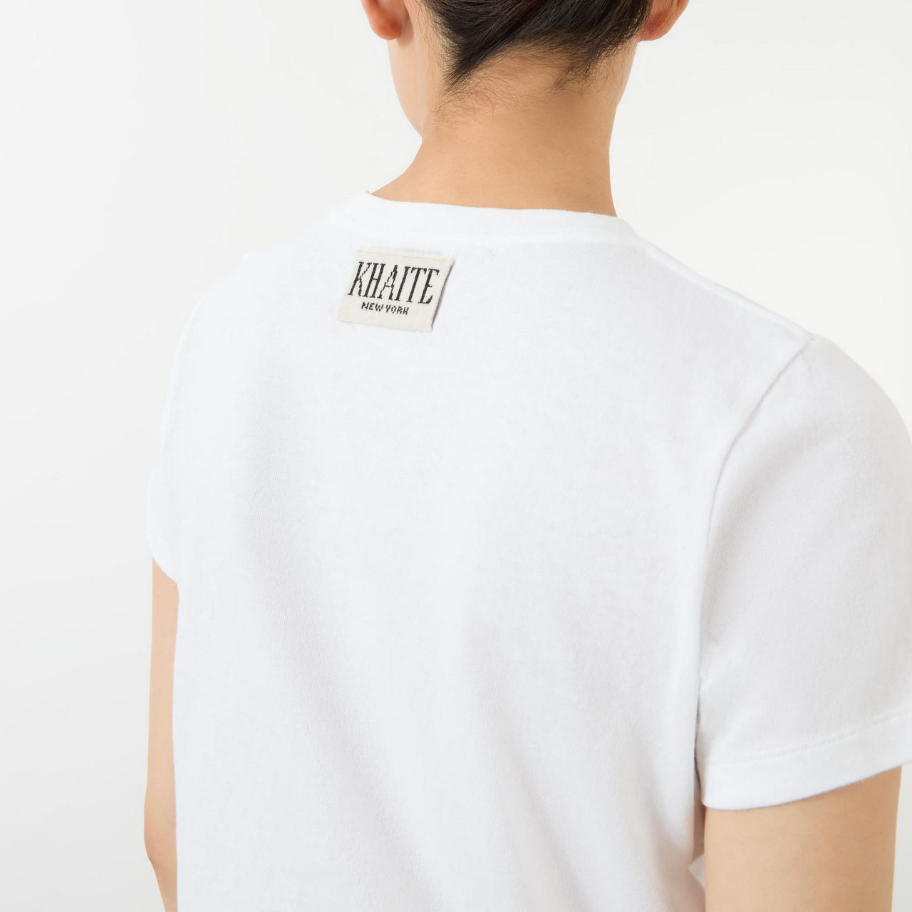 Khaite's AW '24 collection exudes 'quiet luxury', creating classic garments like the Samson t-shirt. Its understated design is framed by a round neckline with short sleeves and features seamless tonal stitching, while it's simply signed off with the label's logo on the back for a signature finish. Tuck into your favourite skirt or pair of trousers for a sleek take.