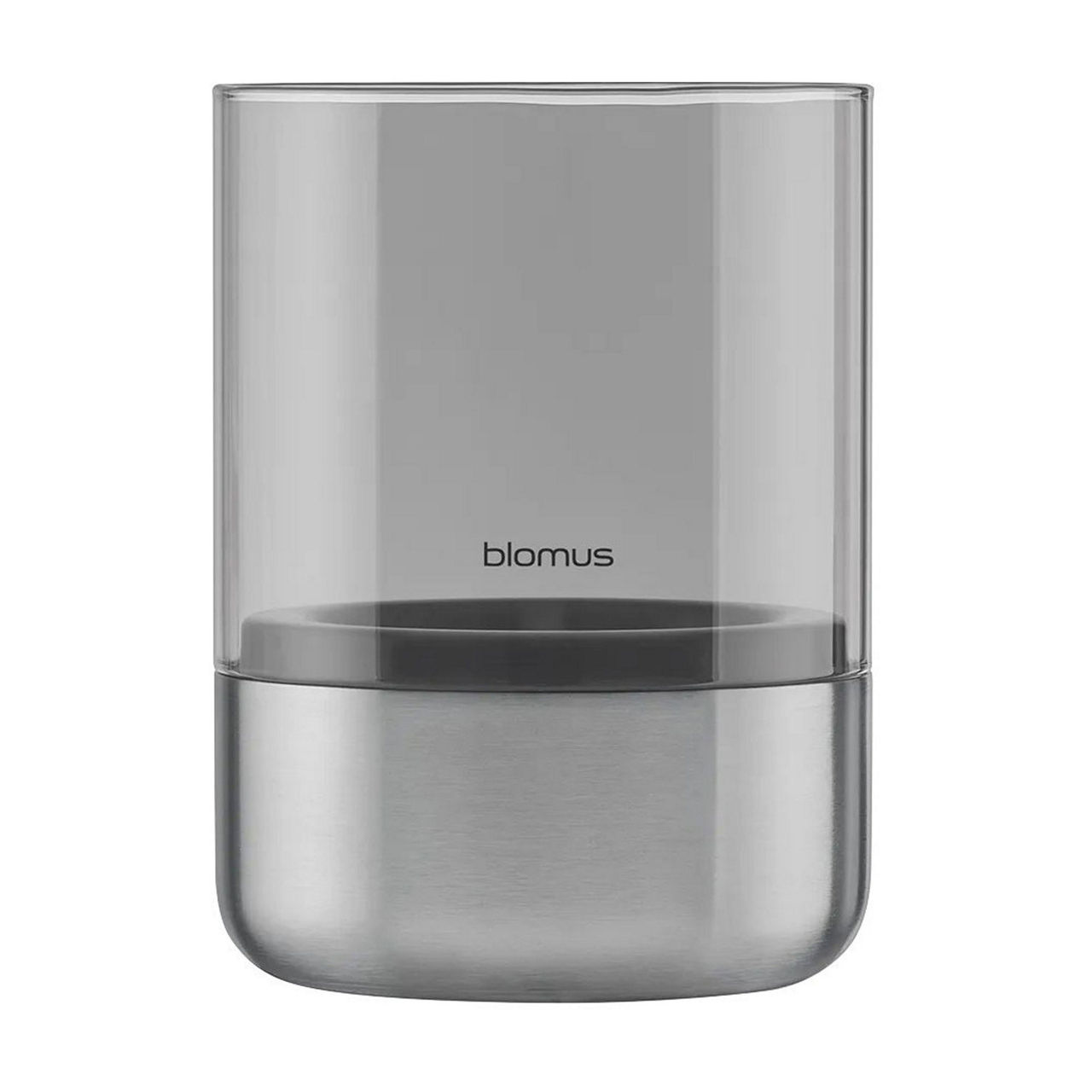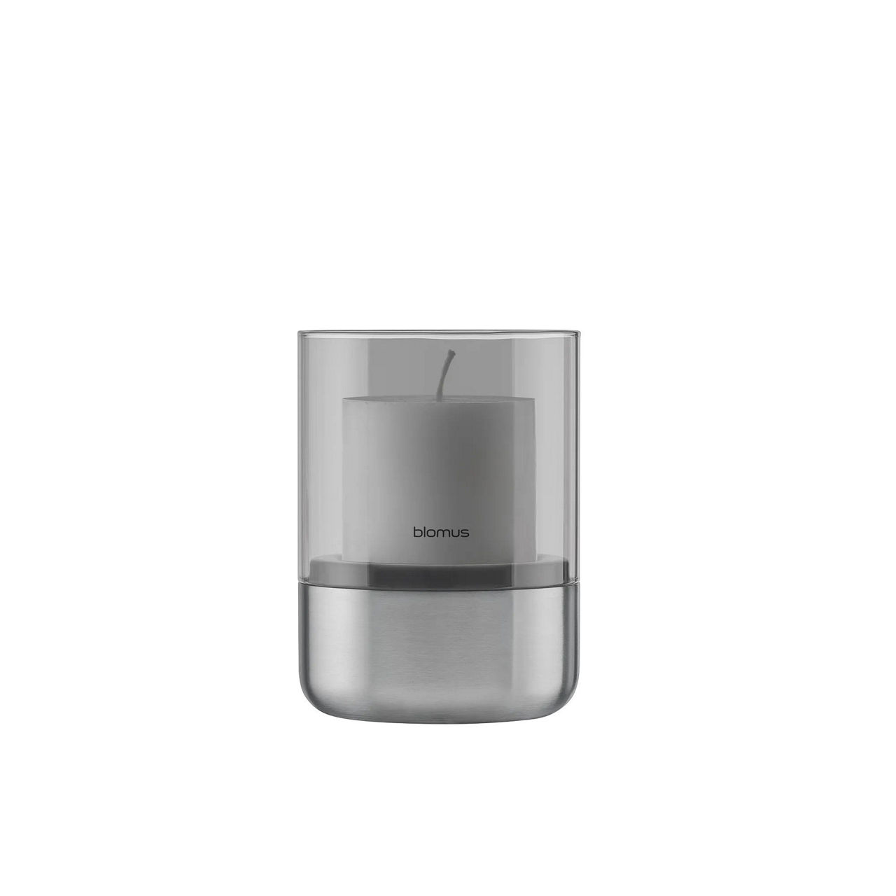 - Candle holder, suitable for tea lights and pillar candles, stainless steel design, matte finish, smoked glass, logo detail