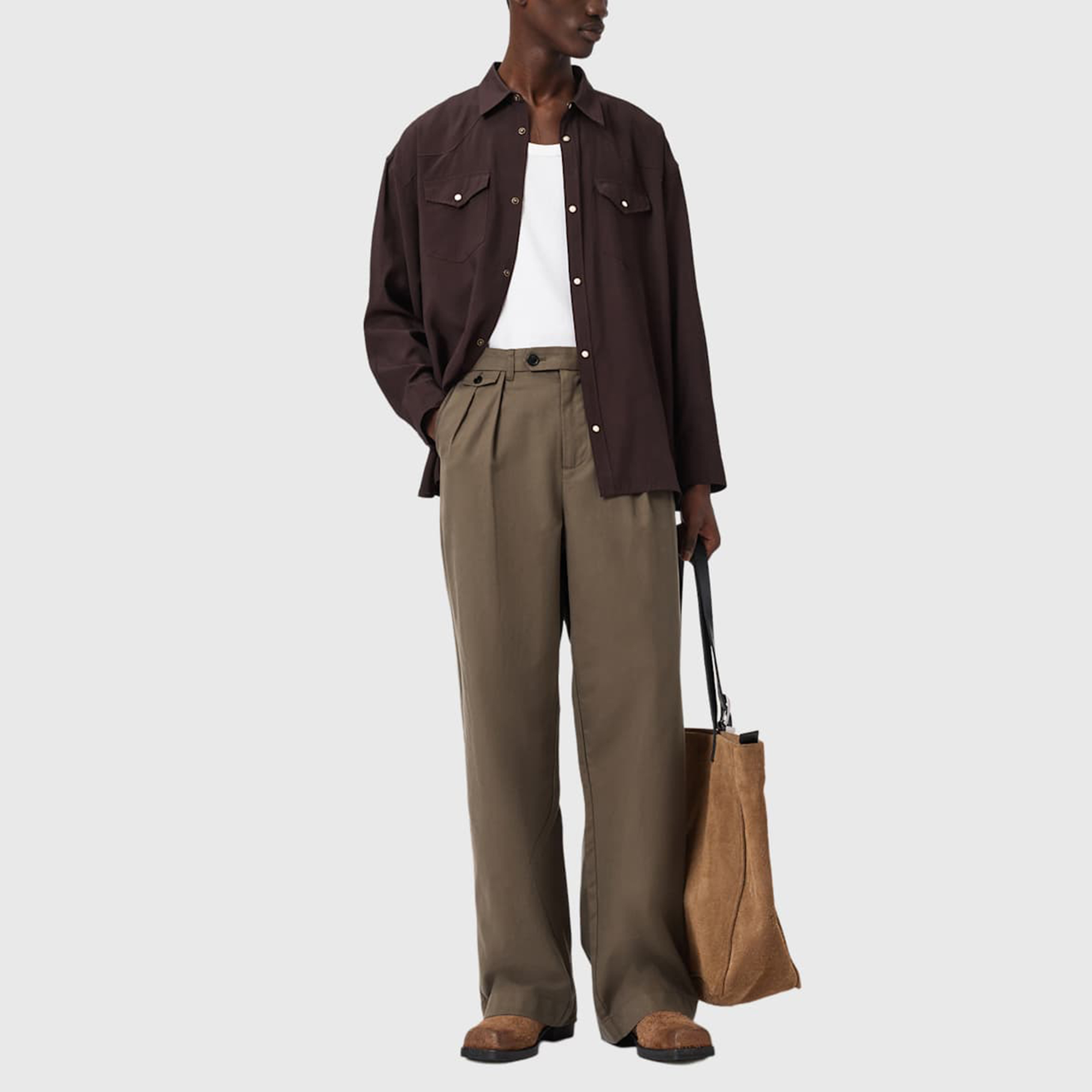 Founded in London in 1994, AllSaints has been crafting iconic leather pieces for decades. As well as statement jackets, biker boots, and accessories, the brand’s everyday items offer a dose of attitude with distressed detailing, daring prints and the signature Ramskull logo.