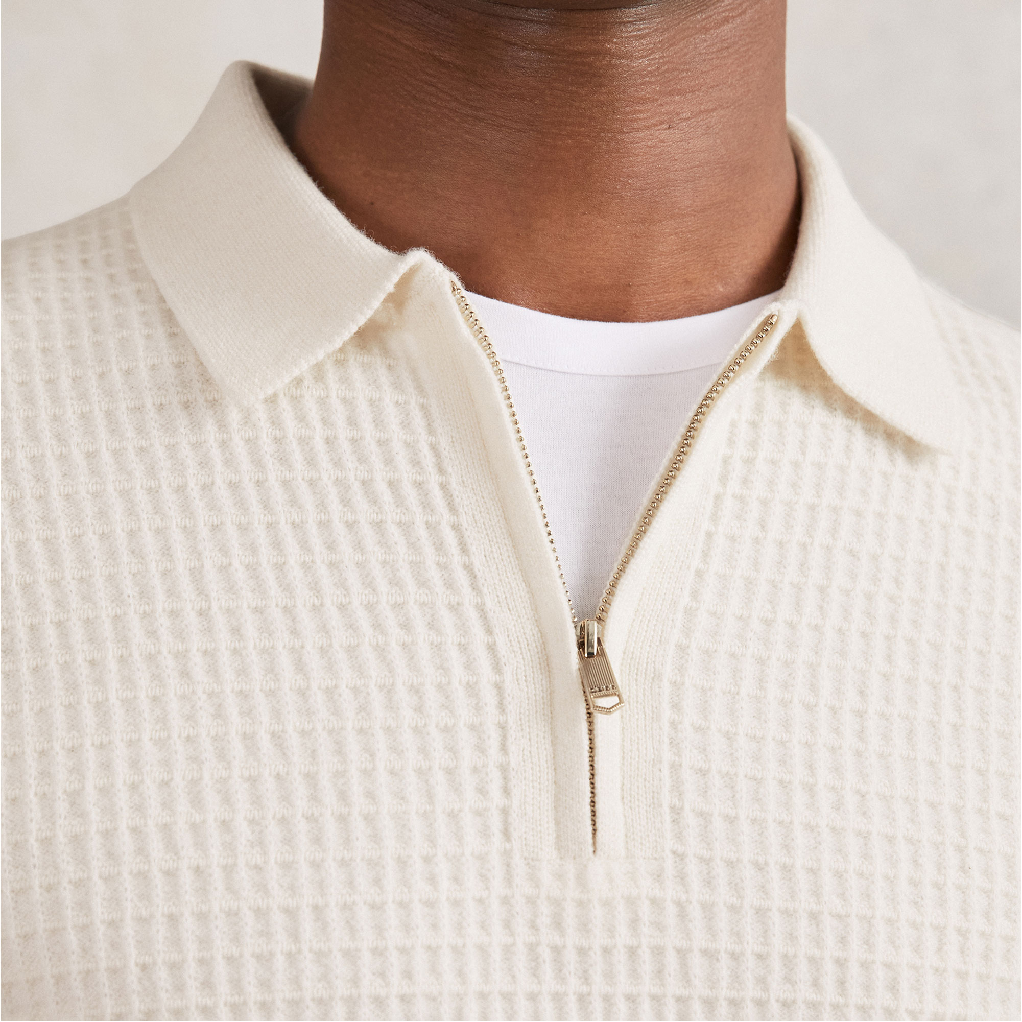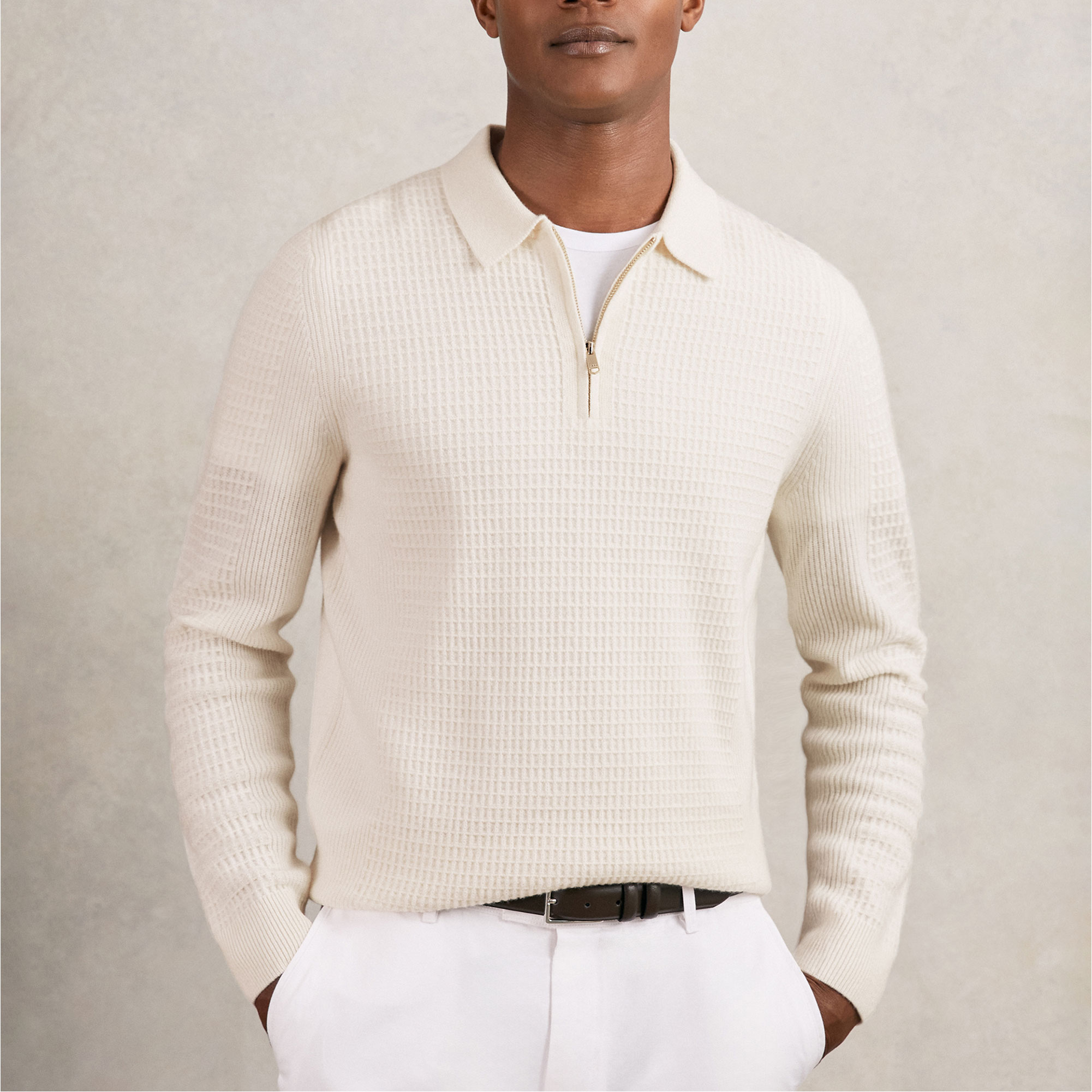 REISS Hamilton Waffle-Knit Half-Zip Polo Shirt