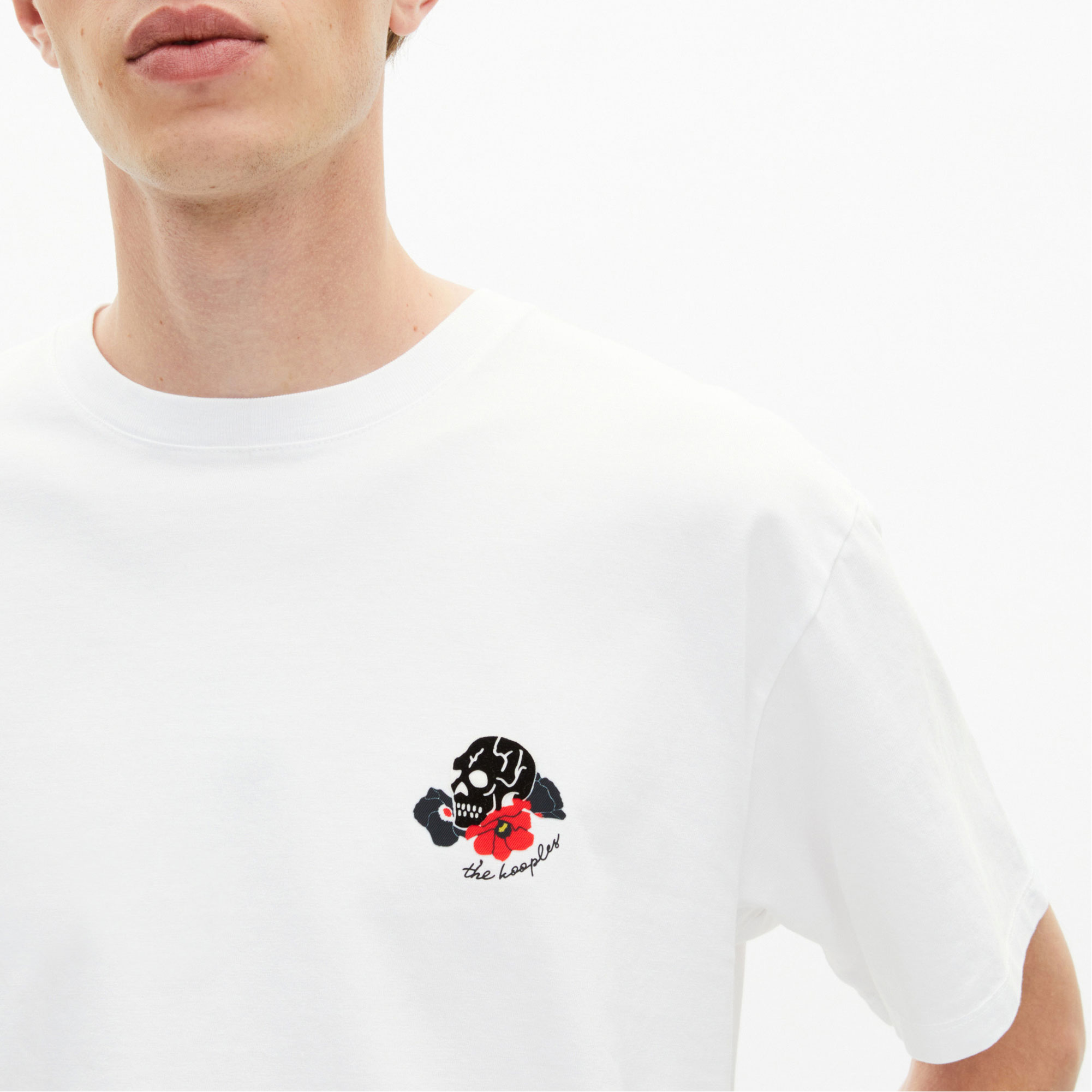 - Round neck, short sleeves, flocking and skull and crossbones print