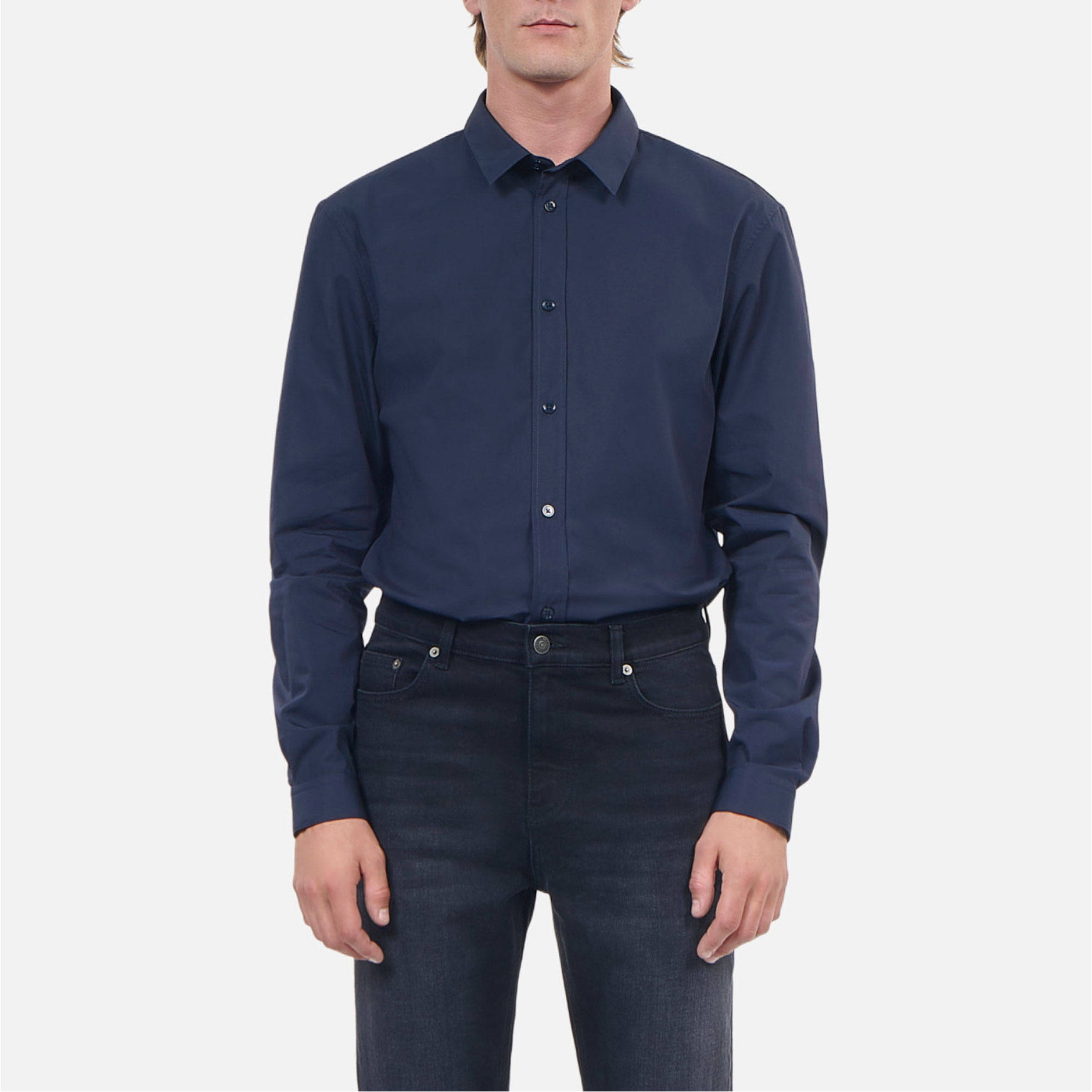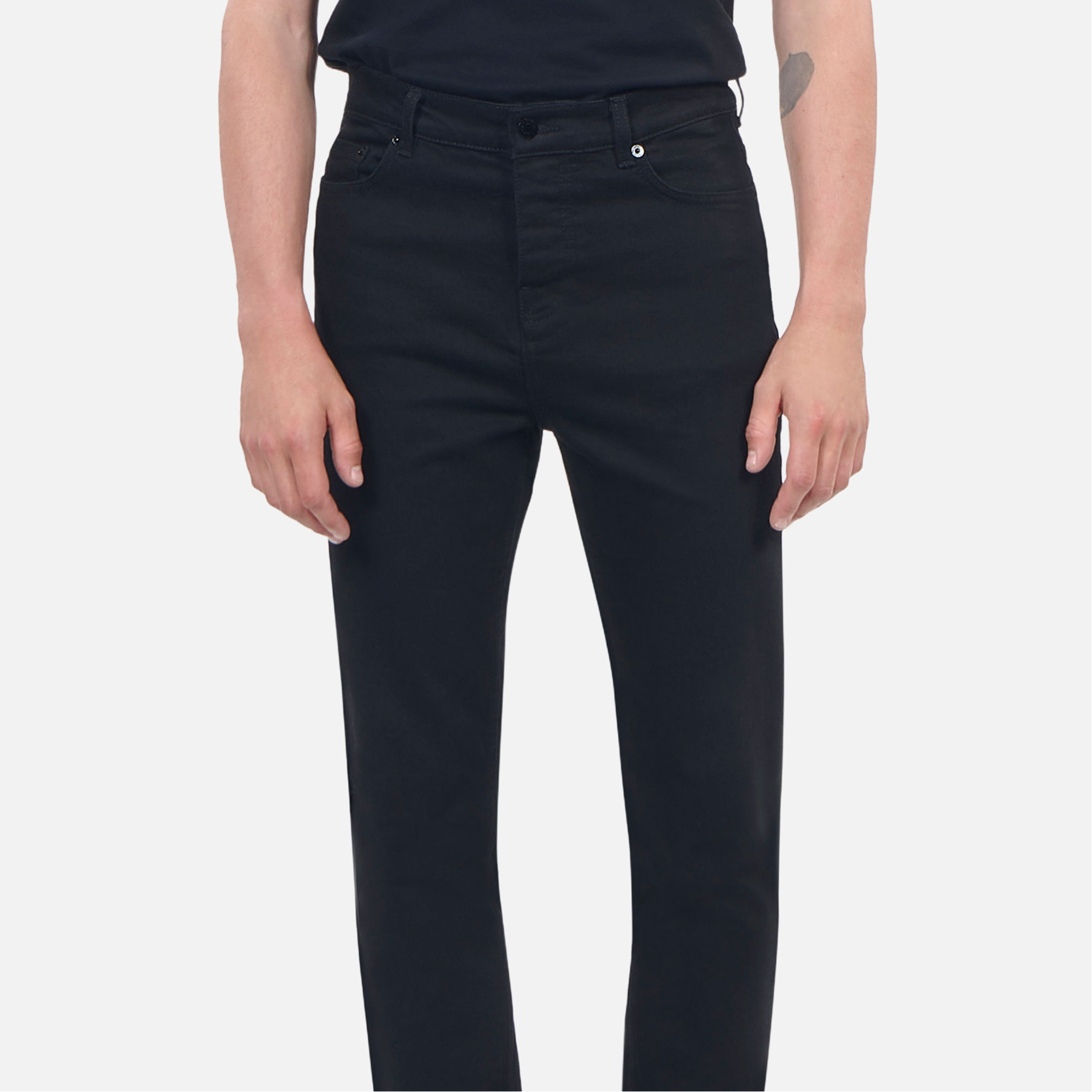 - Slim fit, mid-rise