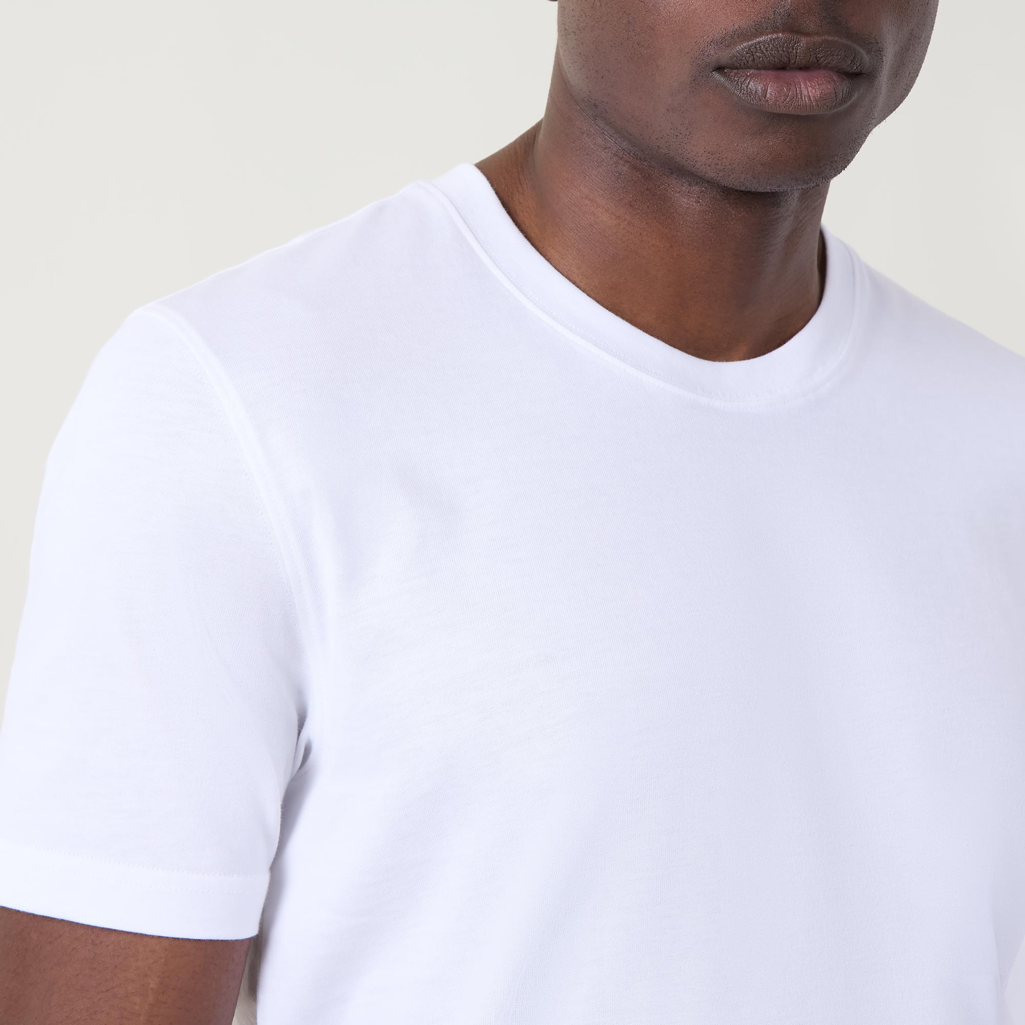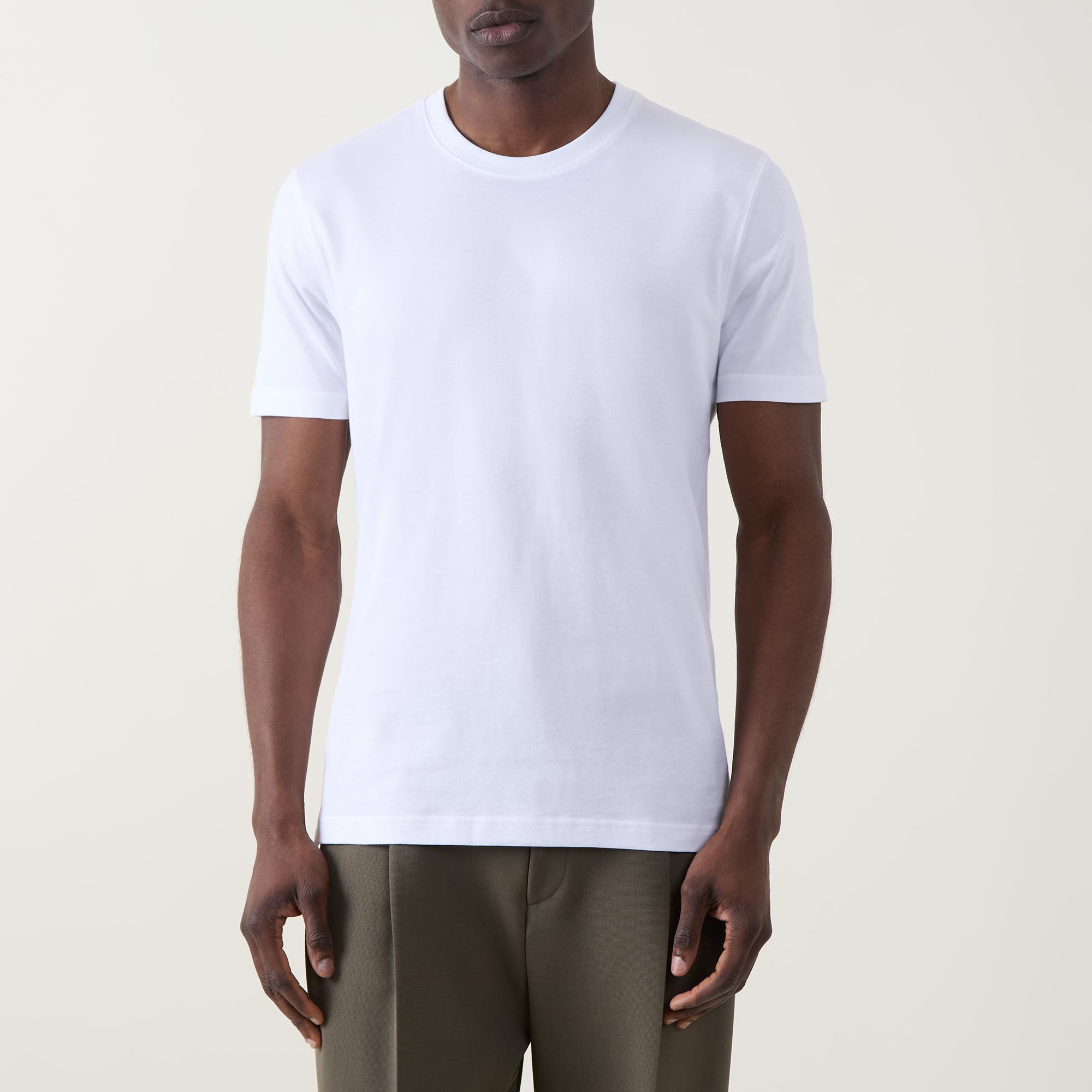 • Crew neck, short sleeves, straight hem, smooth finish
