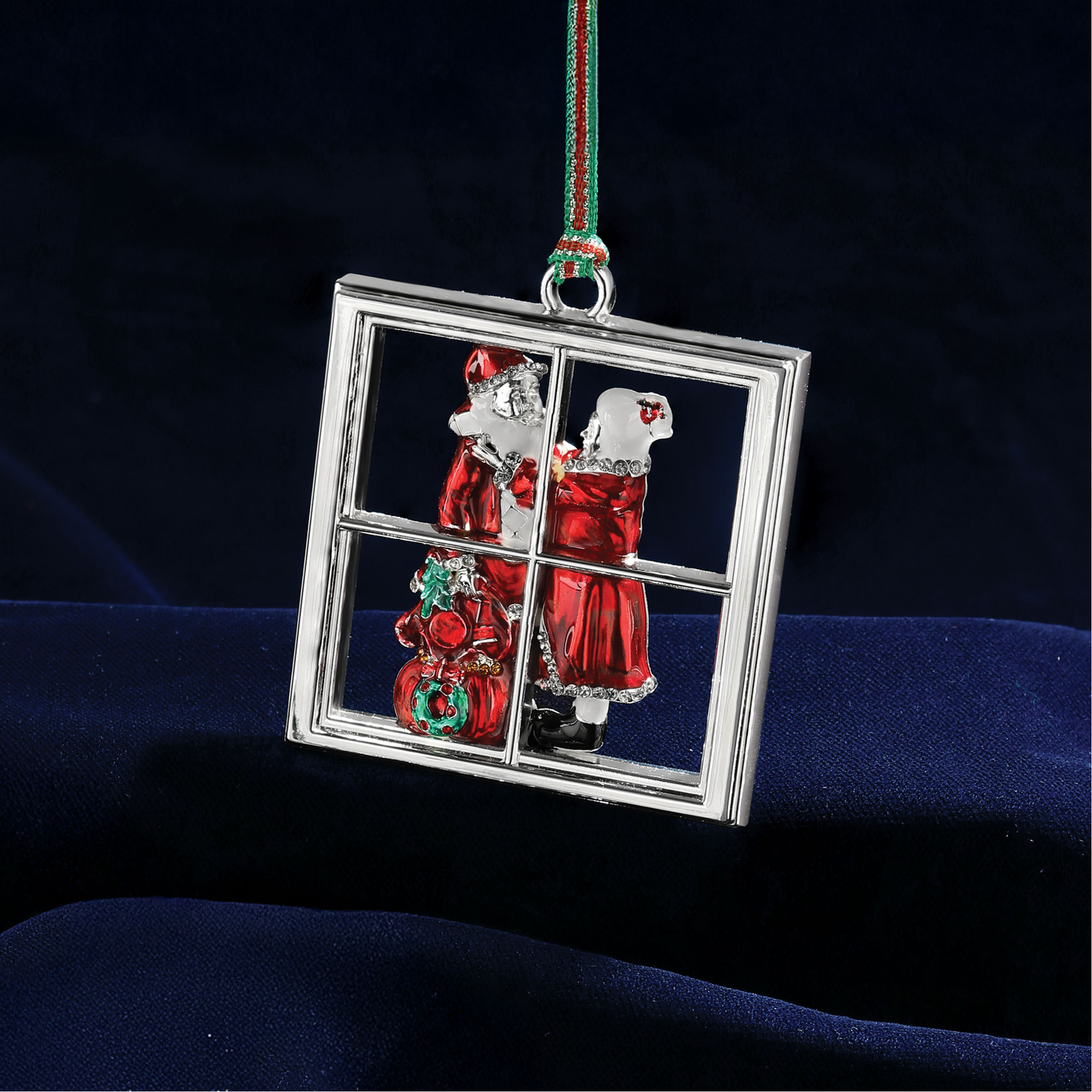 • Silver-plated, protective anti-tarnish layer, 'Santa Leaving North Pole' design, enamel detailing, festive hanging ribbon, presented in Newbridge Silverware Christmas Collection packaging
