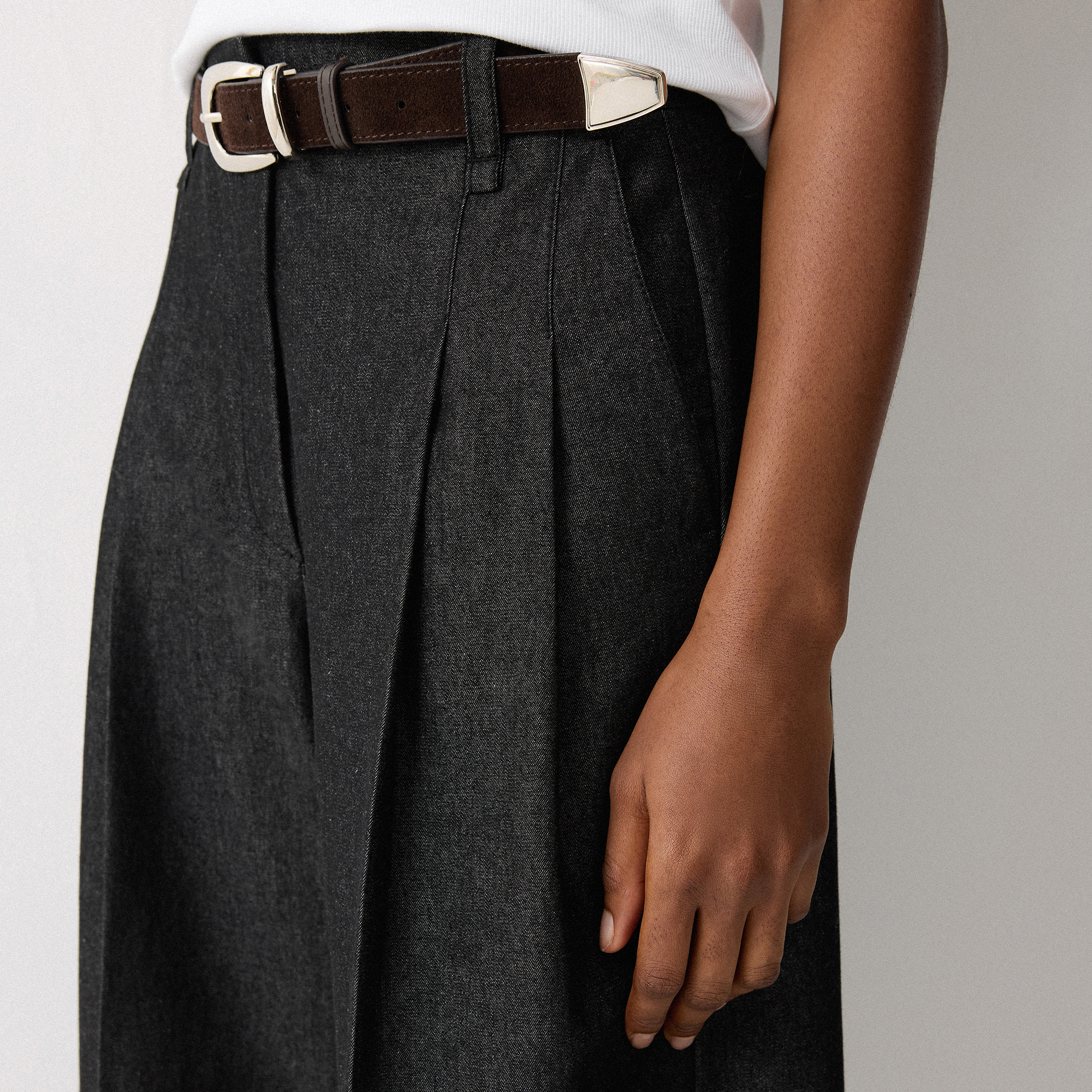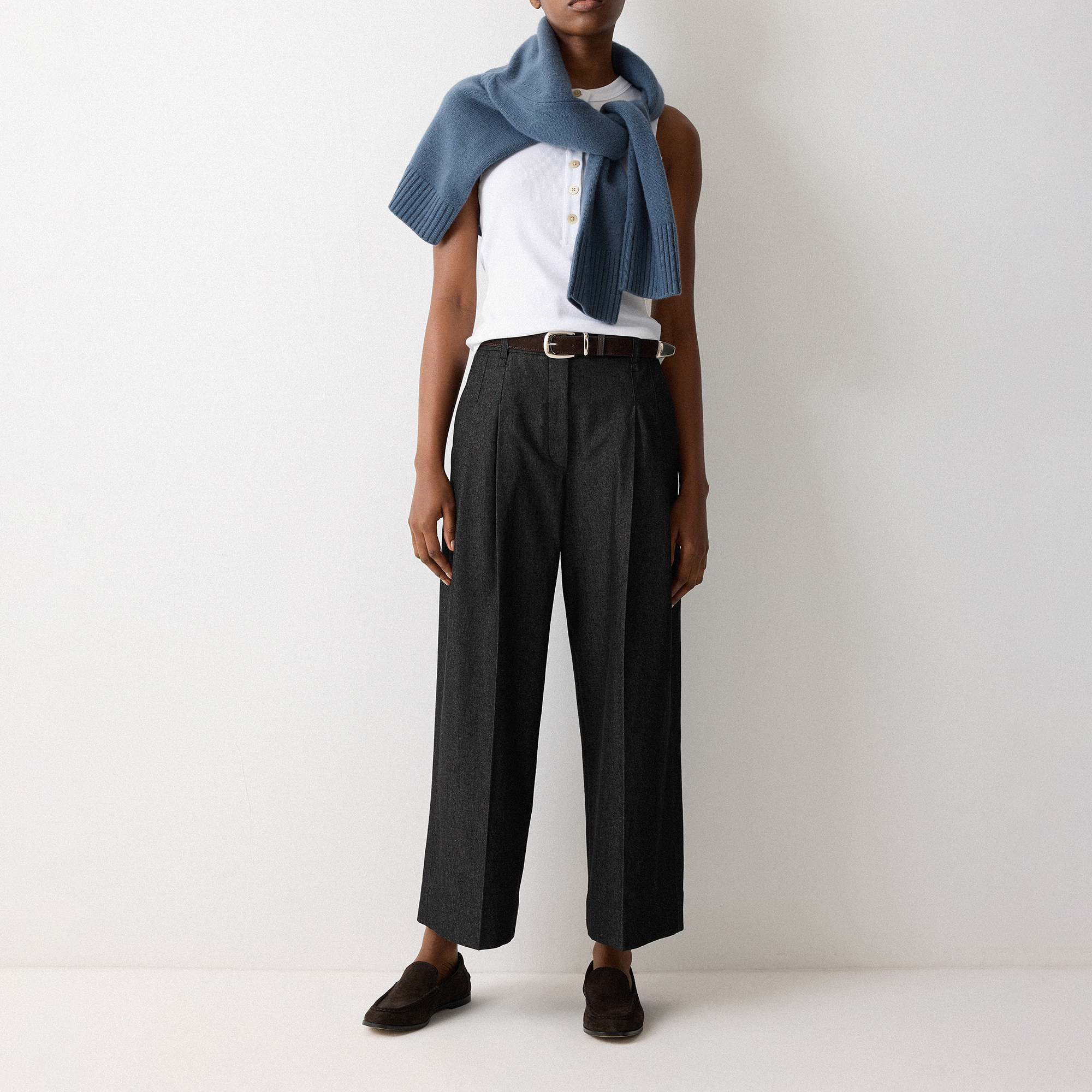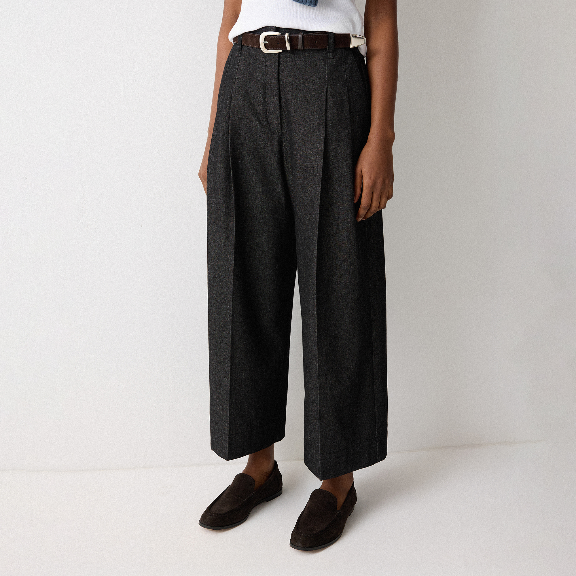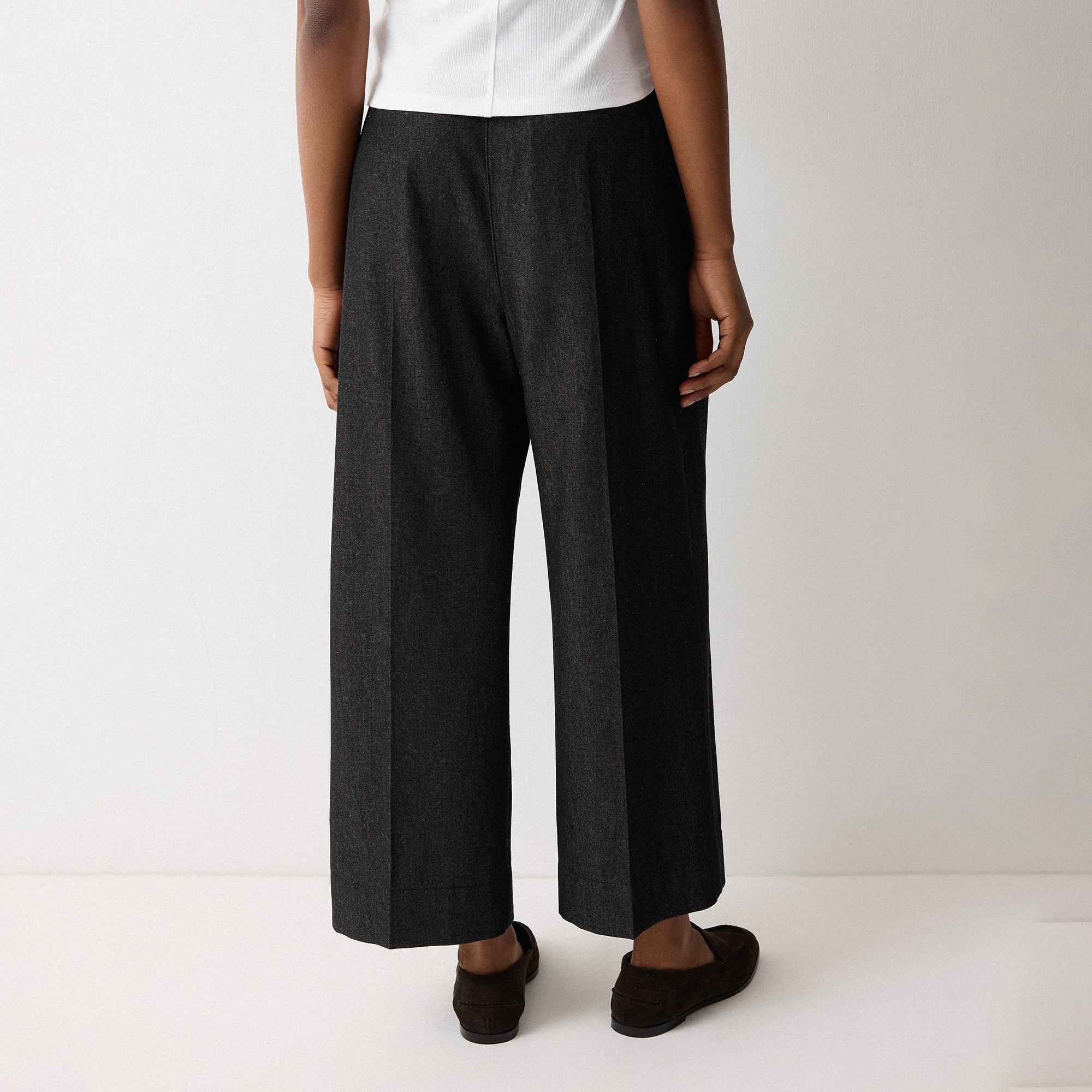 JIGSAW Chambray Pleated Wide Cropped Trousers