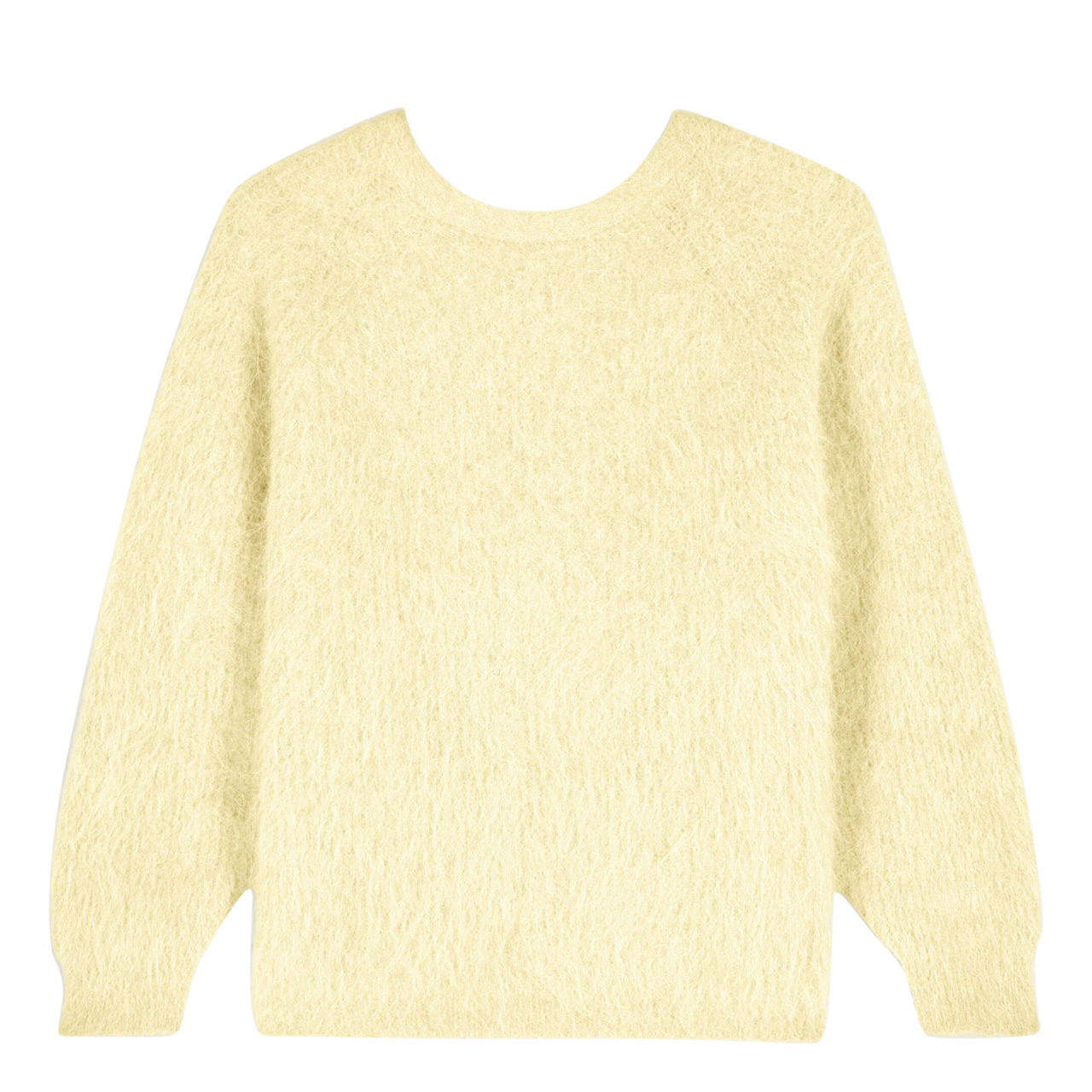 - Round neckline, V-back with twist detail, long sleeves, ribbed cuffs, fluffy finish, rib knit structure