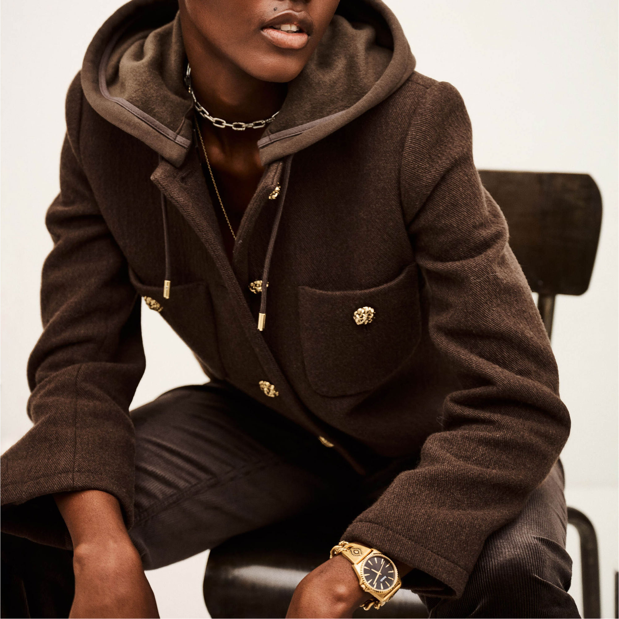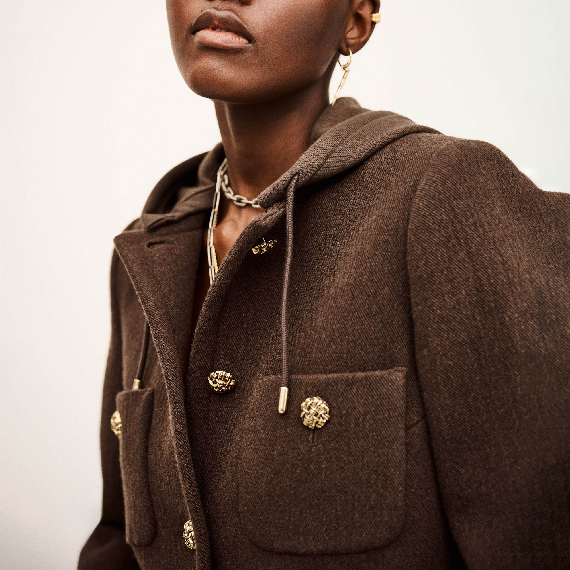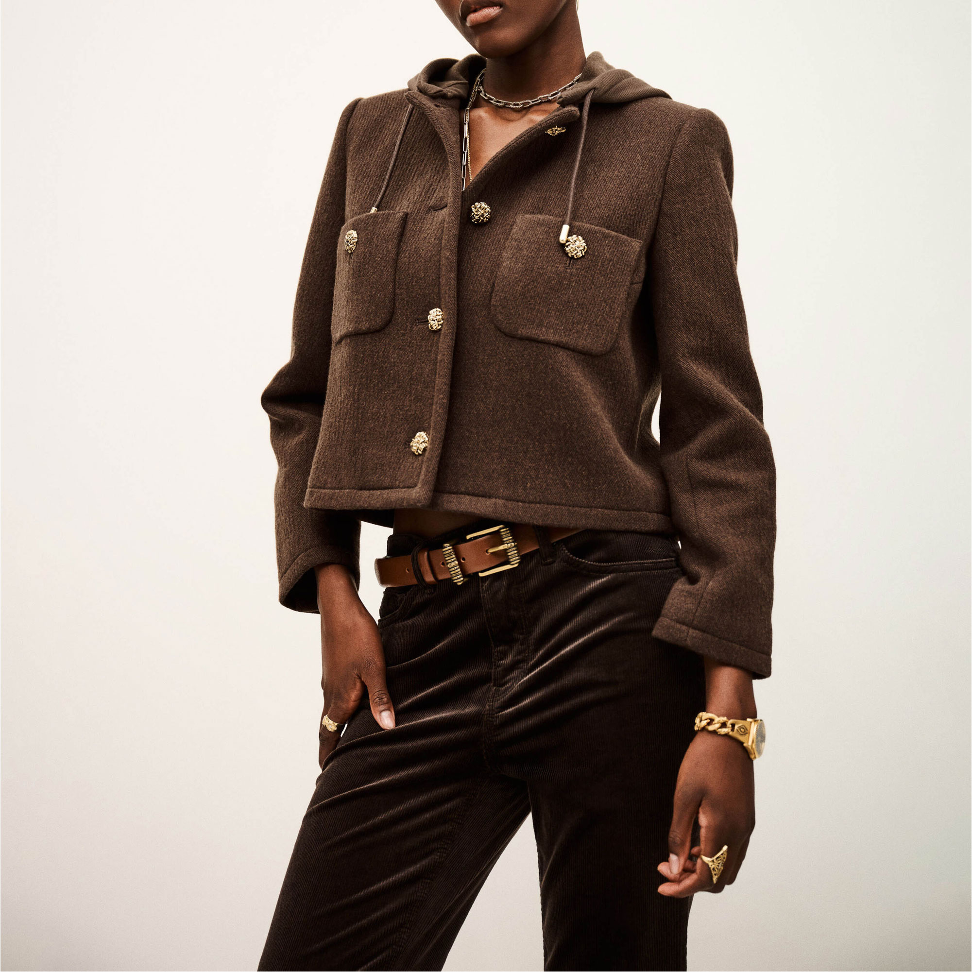 - Patch pockets, embellished button fastening