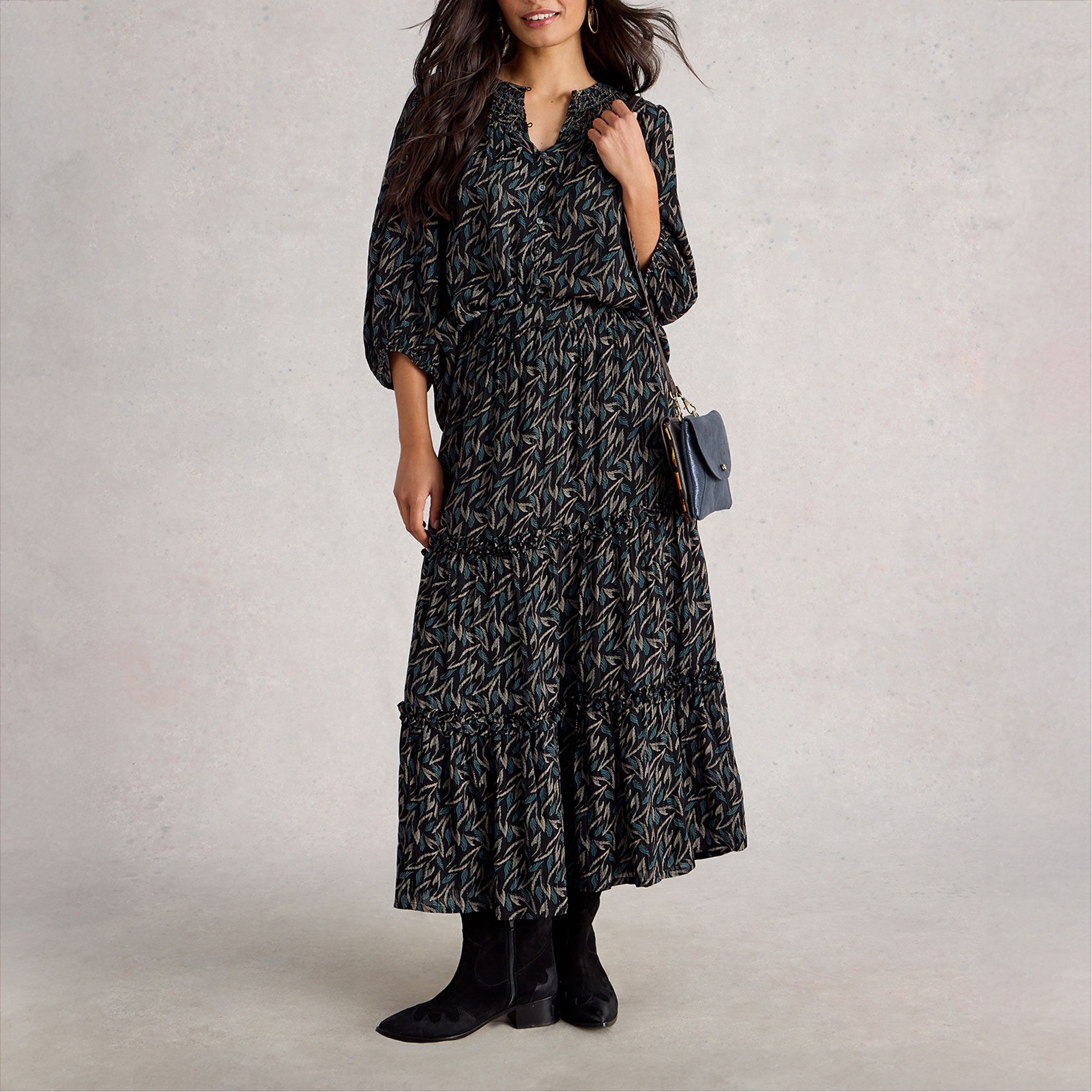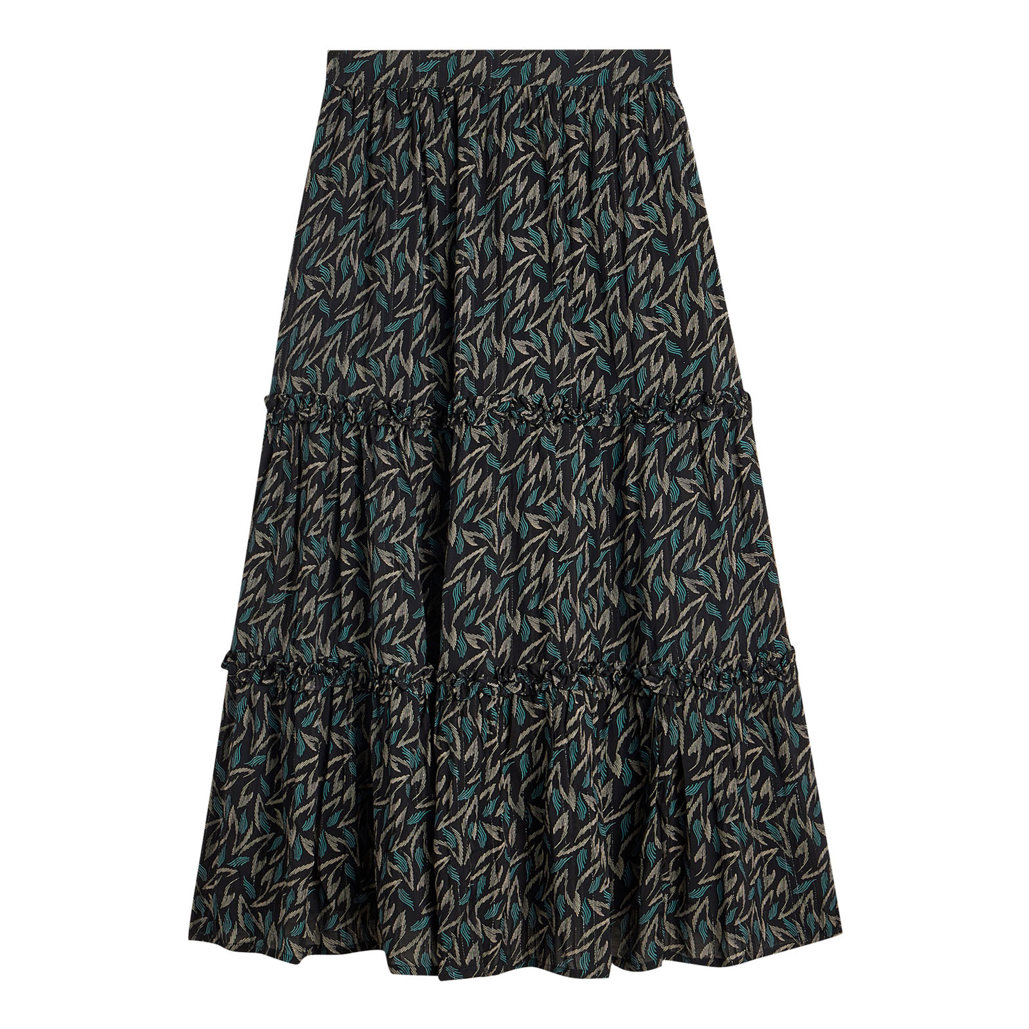 - Elasticated waist, tiered skirt with ruffles at each tier seam