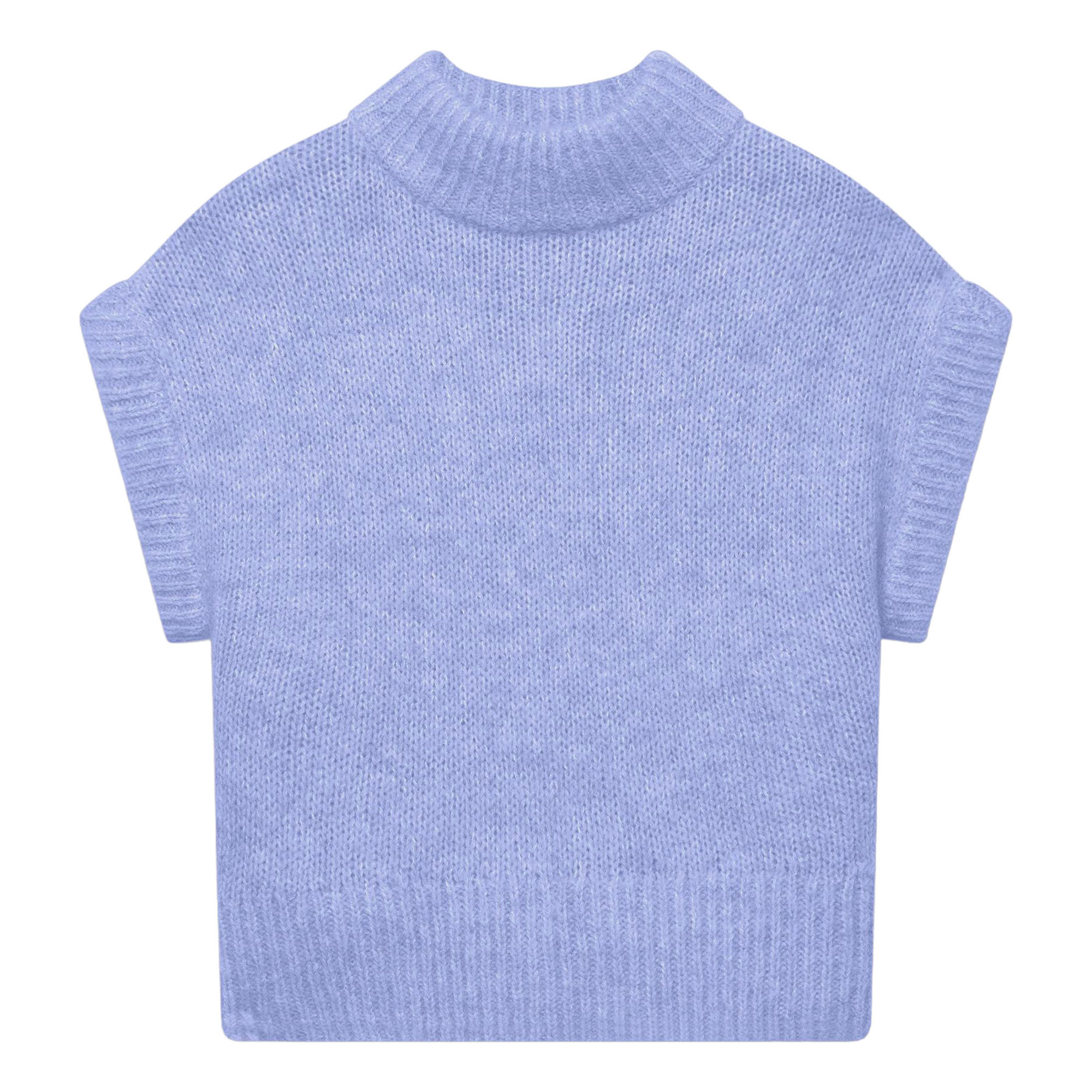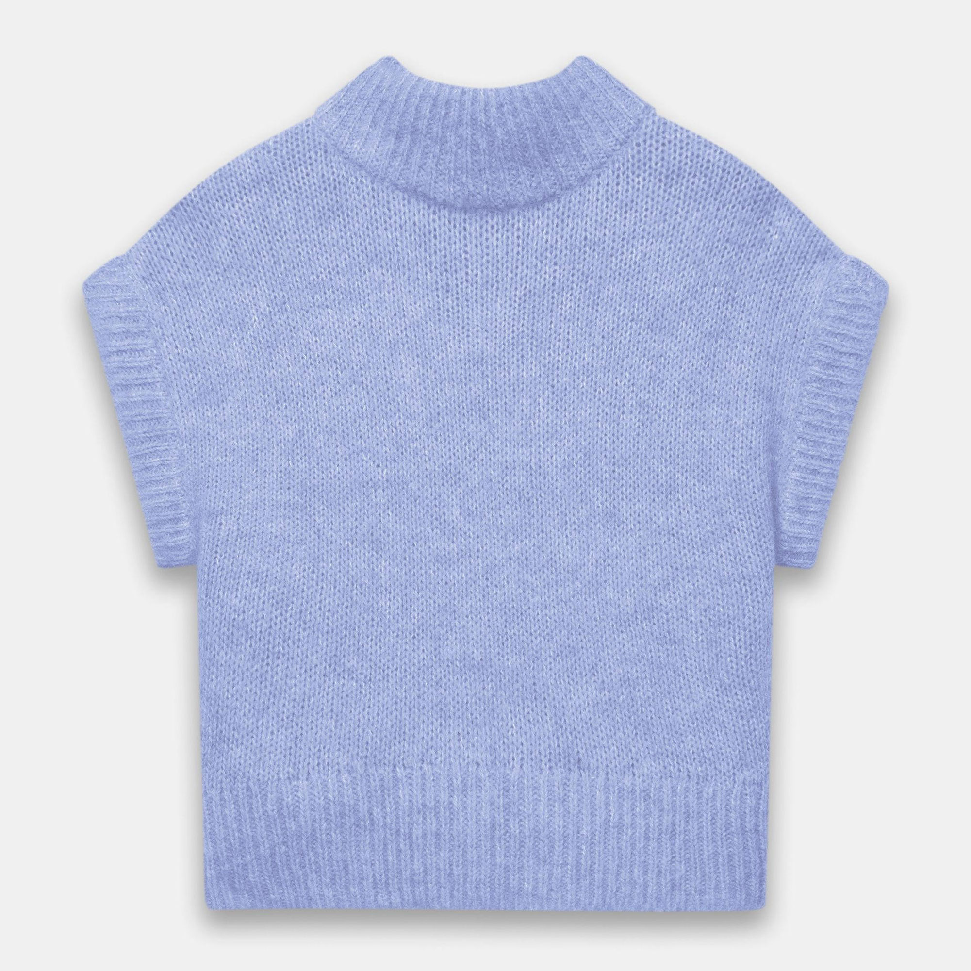 • High neckline, sleeveless design, ribbed trims