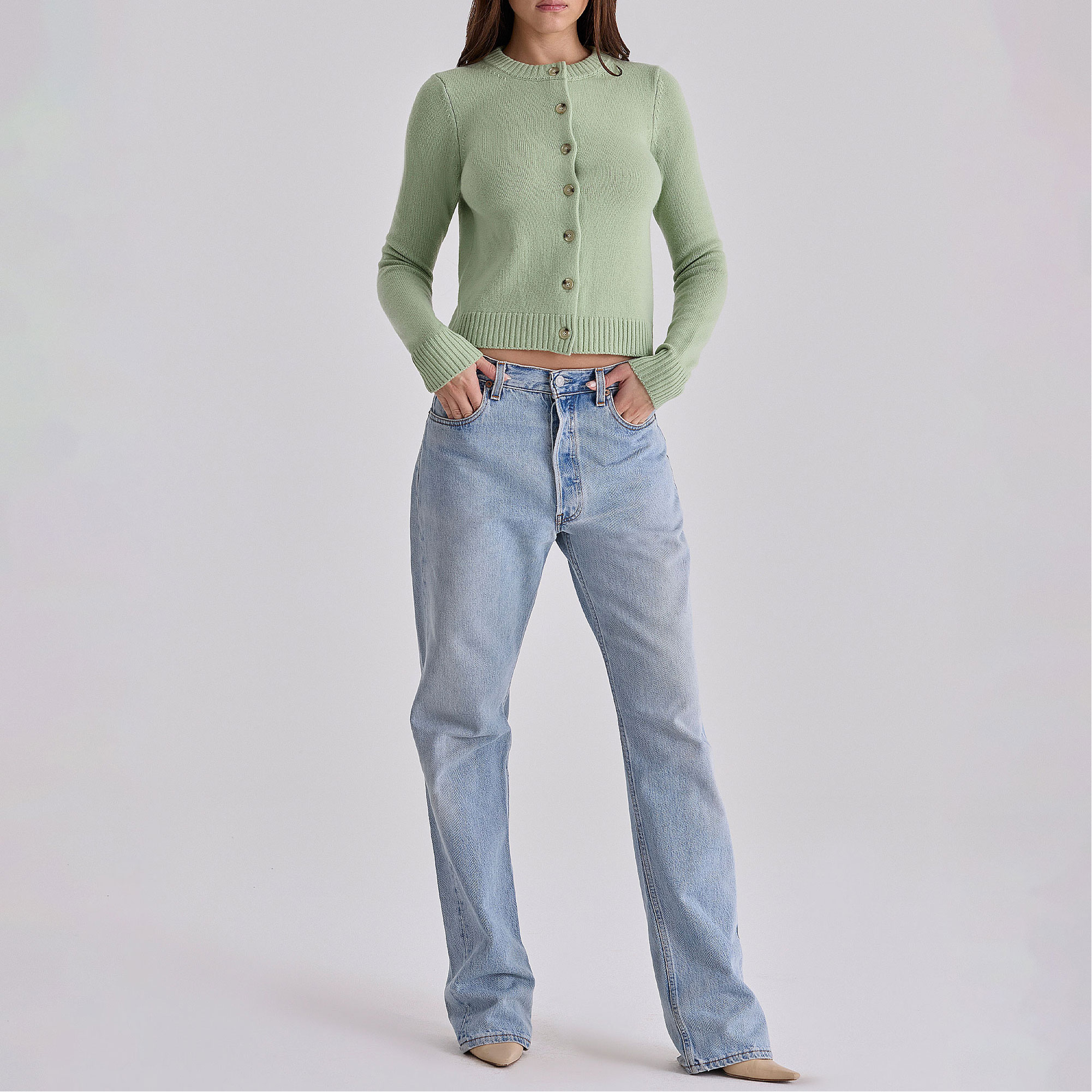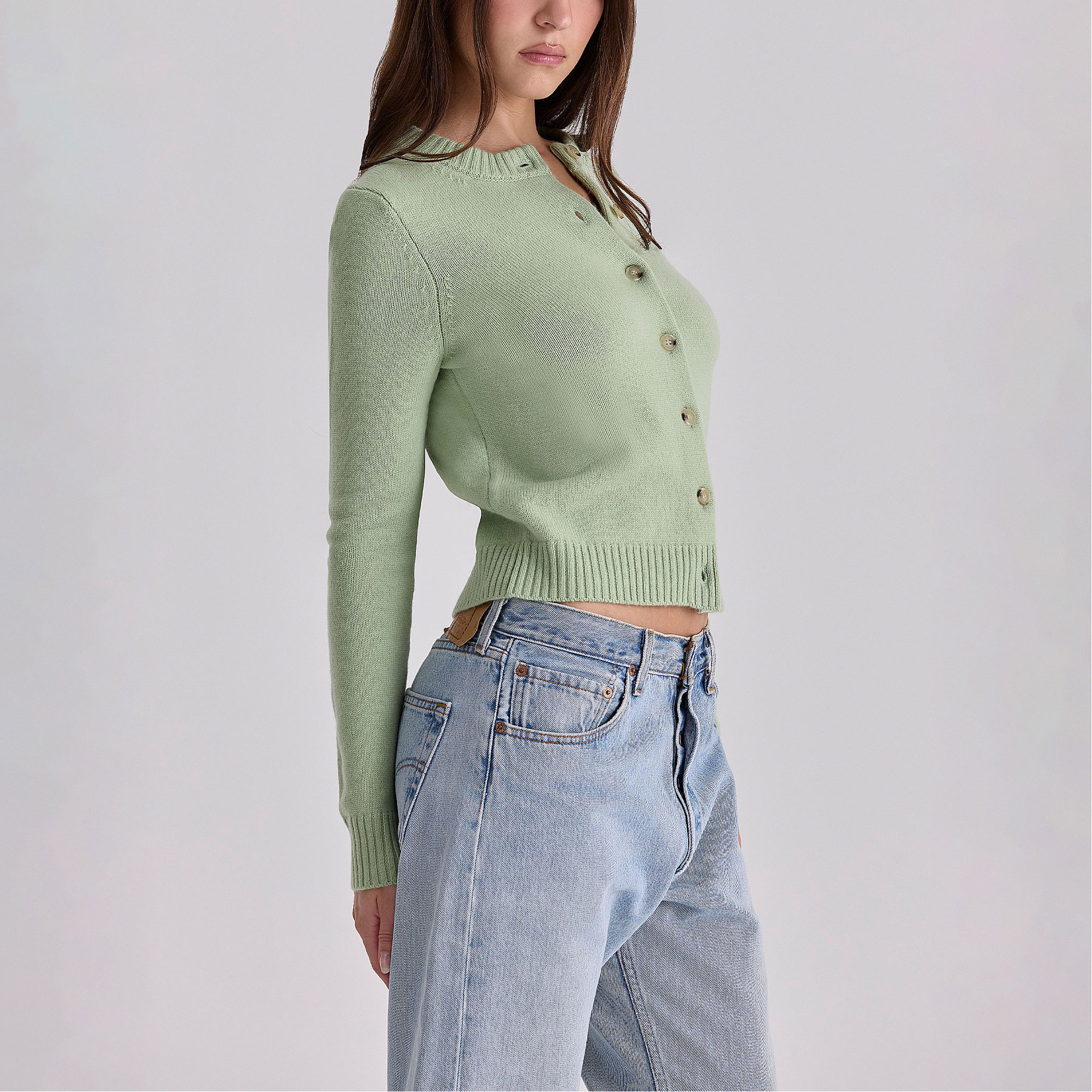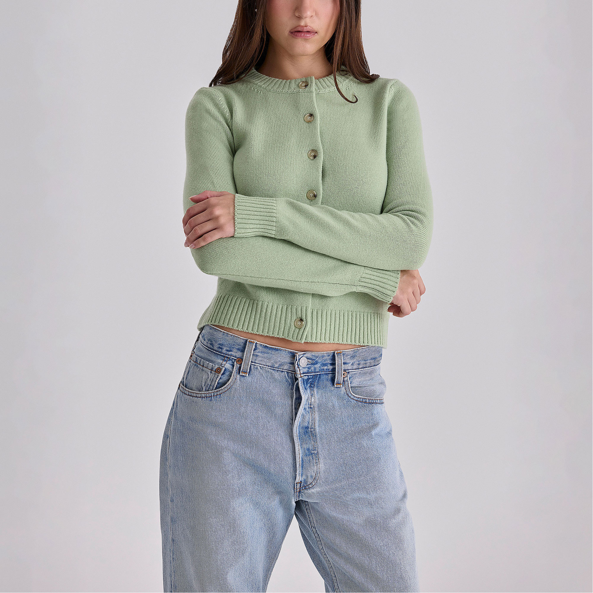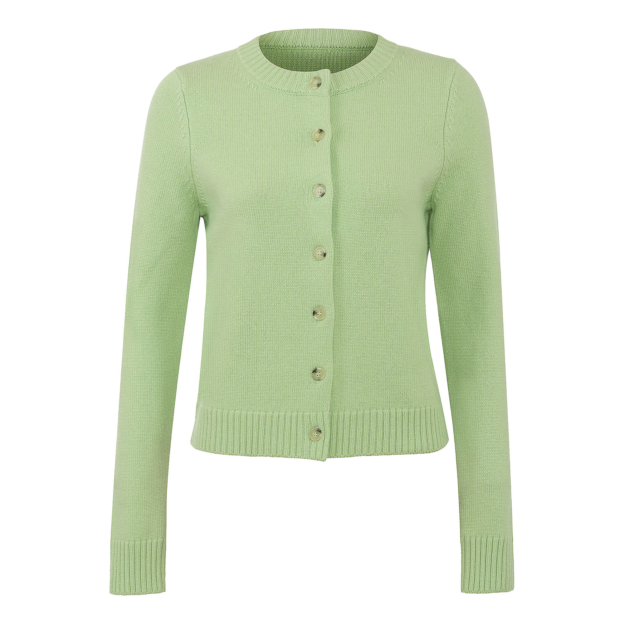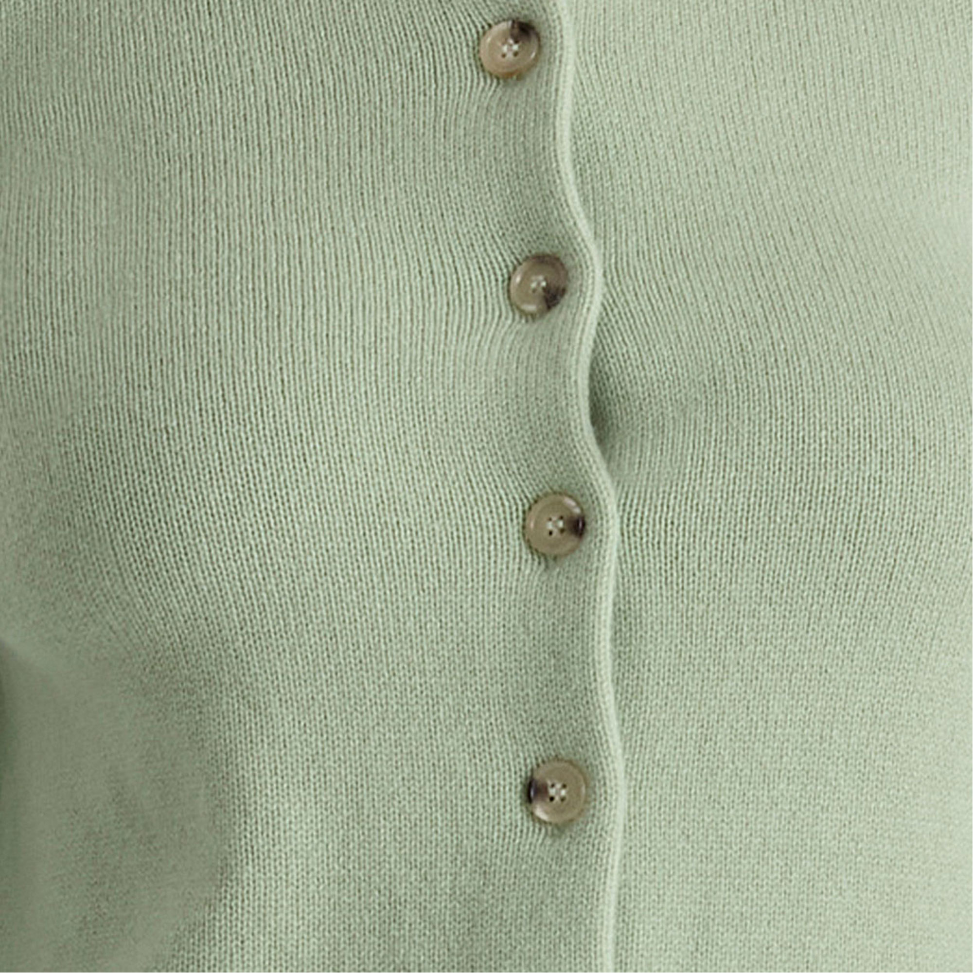 - Cashmere and merino wool blend, long sleeves, button fastening, smooth knit, ribbed trims