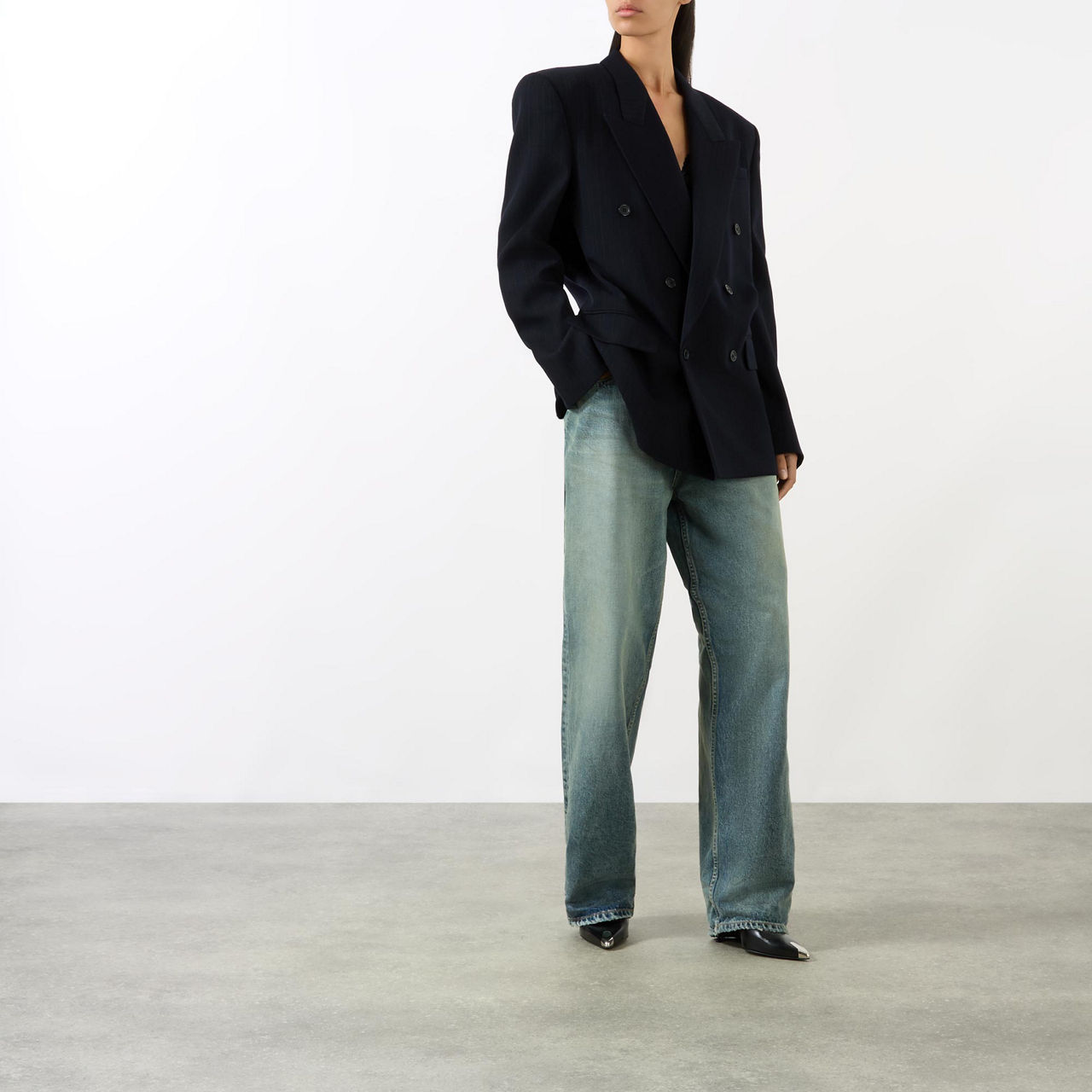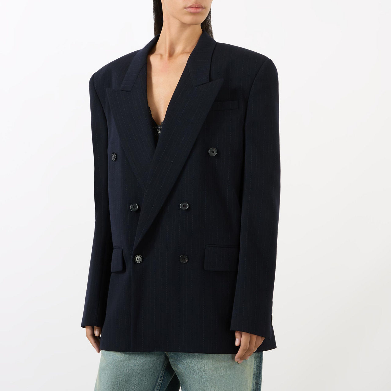 This blazer from Saint Laurent's latest collection demonstrates the French labels exquisite tailoring. Spun from pure wool fabric with a silk lining, it's covered in a classic pinstripe pattern and is outlined with peak lapels and a double-breasted front. Cut to an oversized fit, it styles effortlessly over an array of looks for instant style points.