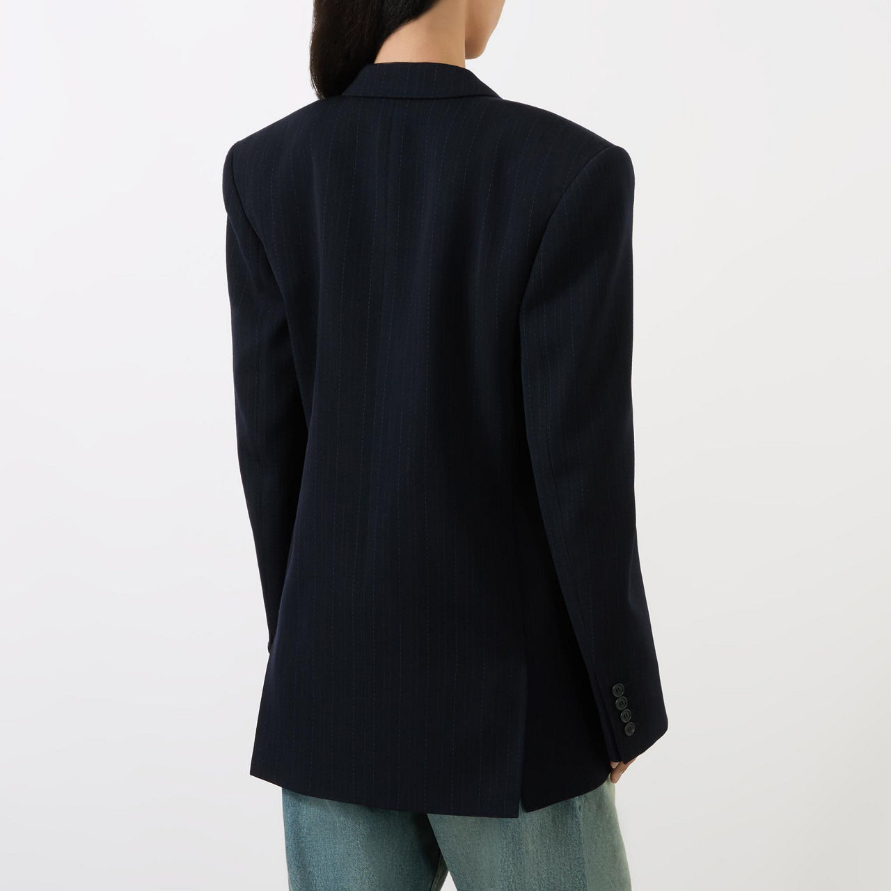 SAINT LAURENT Strong Shoulder Pin Stripe Blazer