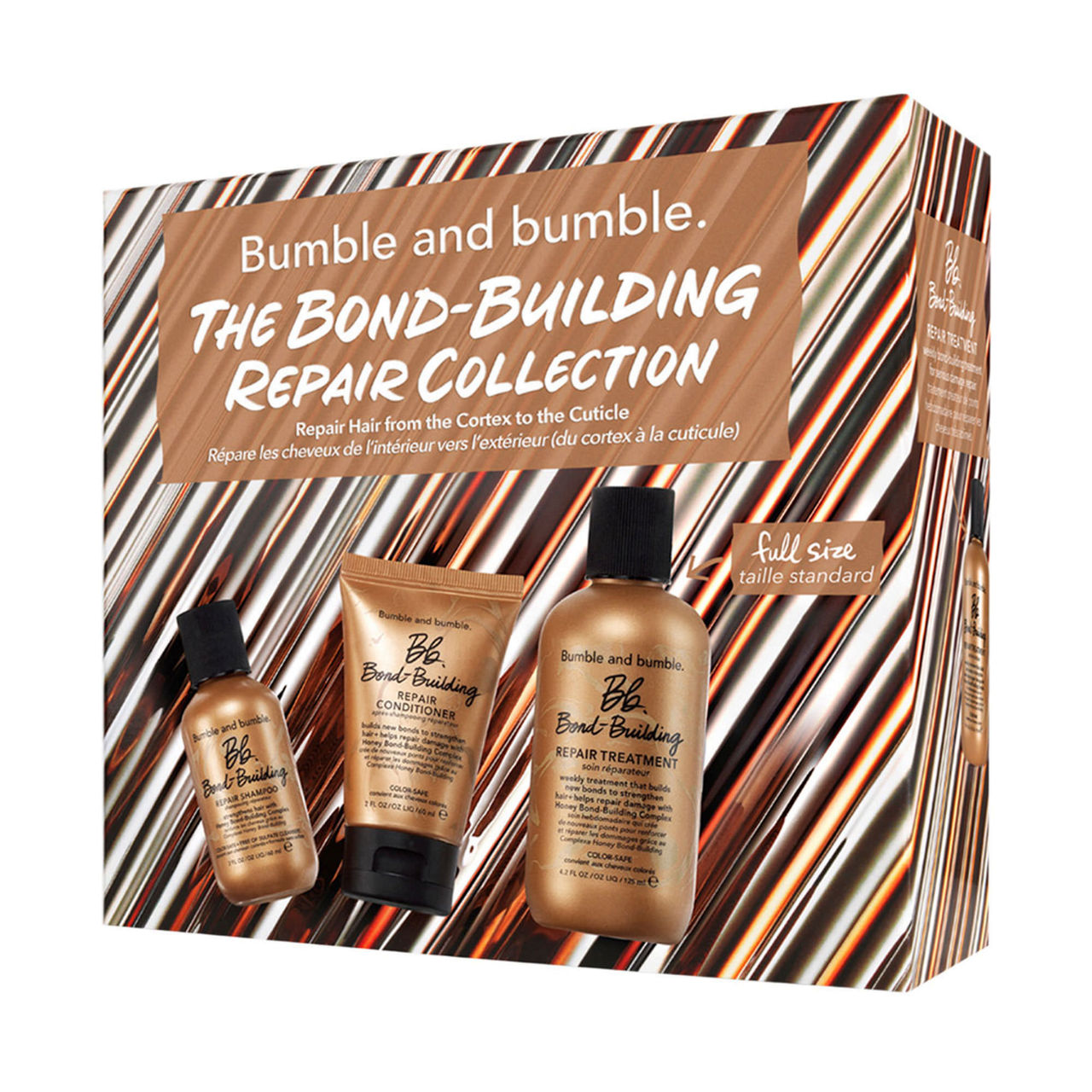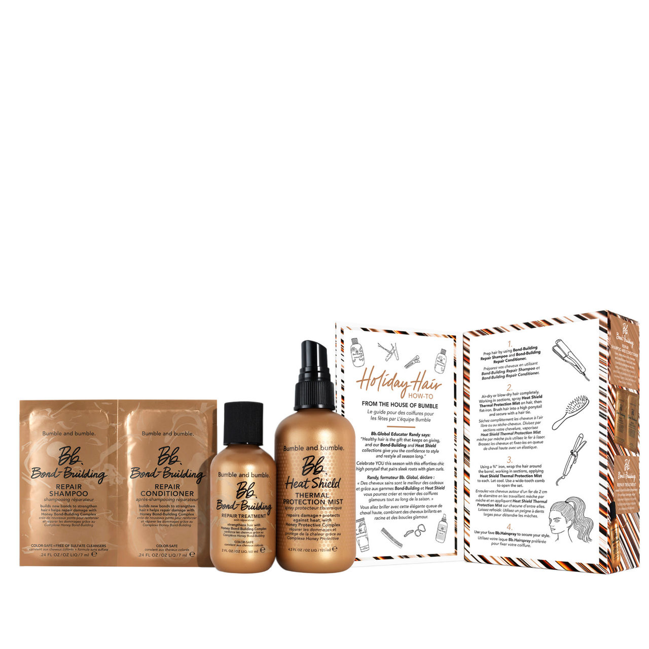 Go for all the styles this season thanks to this hair crew. Bond-Building Repair Shampoo and Repair Conditioner build new bonds, strengthen strands, and deliver healthy-looking shine. Our powerhouse Bond-Building Repair Treatment also builds new bonds to help reduce the look of past damage, as well as fortifies hair fibres to help protect against future damage. When it comes time to changing up your look with all the holiday hairstyles, Heat Shield Thermal Protection Mist is here for you. It shields hair against heat styling up to 232°C, repairs damage, and helps prevent breakage, while conditioning, reducing frizz, and improving the feel of elasticity.