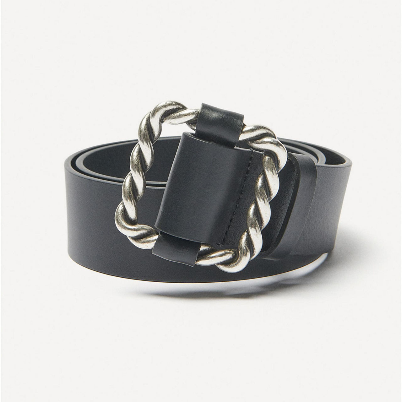 The Bimba belt by ba&sh is a stylish finishing touch to any outfit. This wide belt in subtly grained leather for an authentic effect has a large, twisted silver metal buckle.