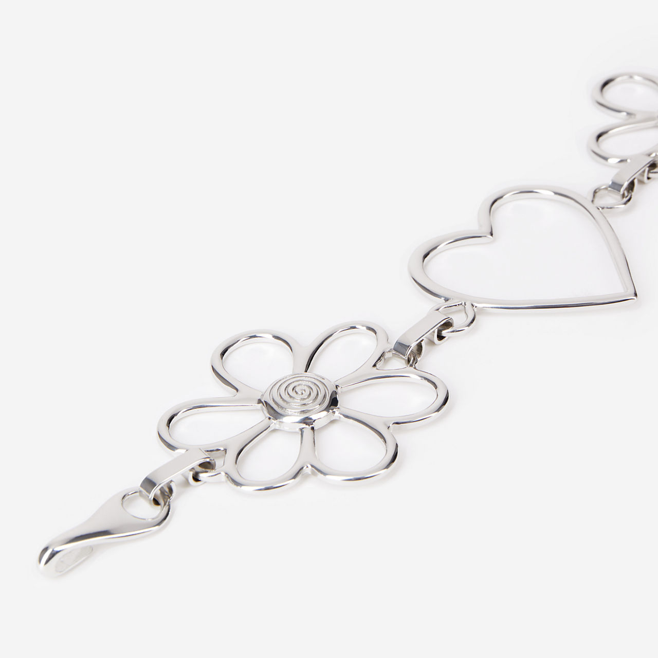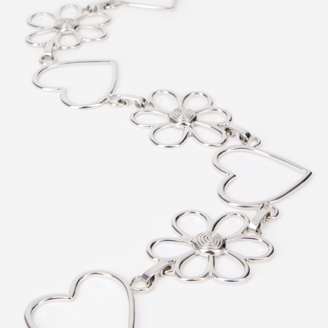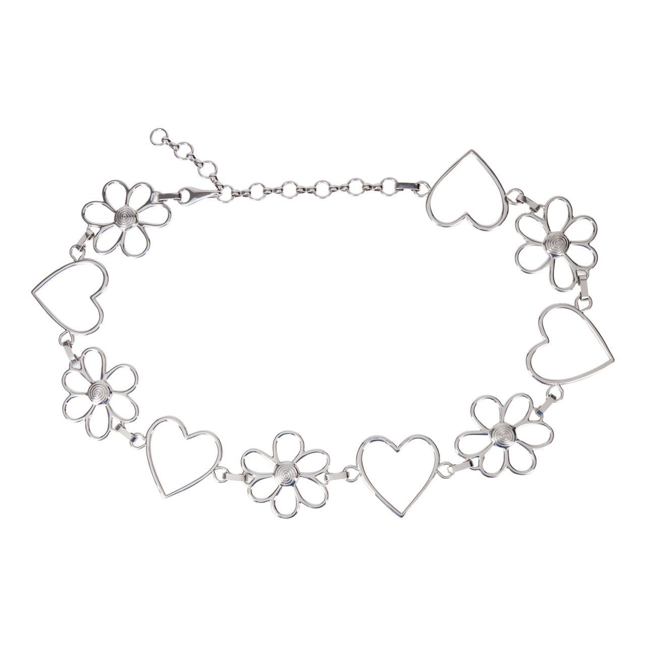 - Silver-tone metalwork, chain style, Heart and floral detailing, hook fastening, adjustable length
